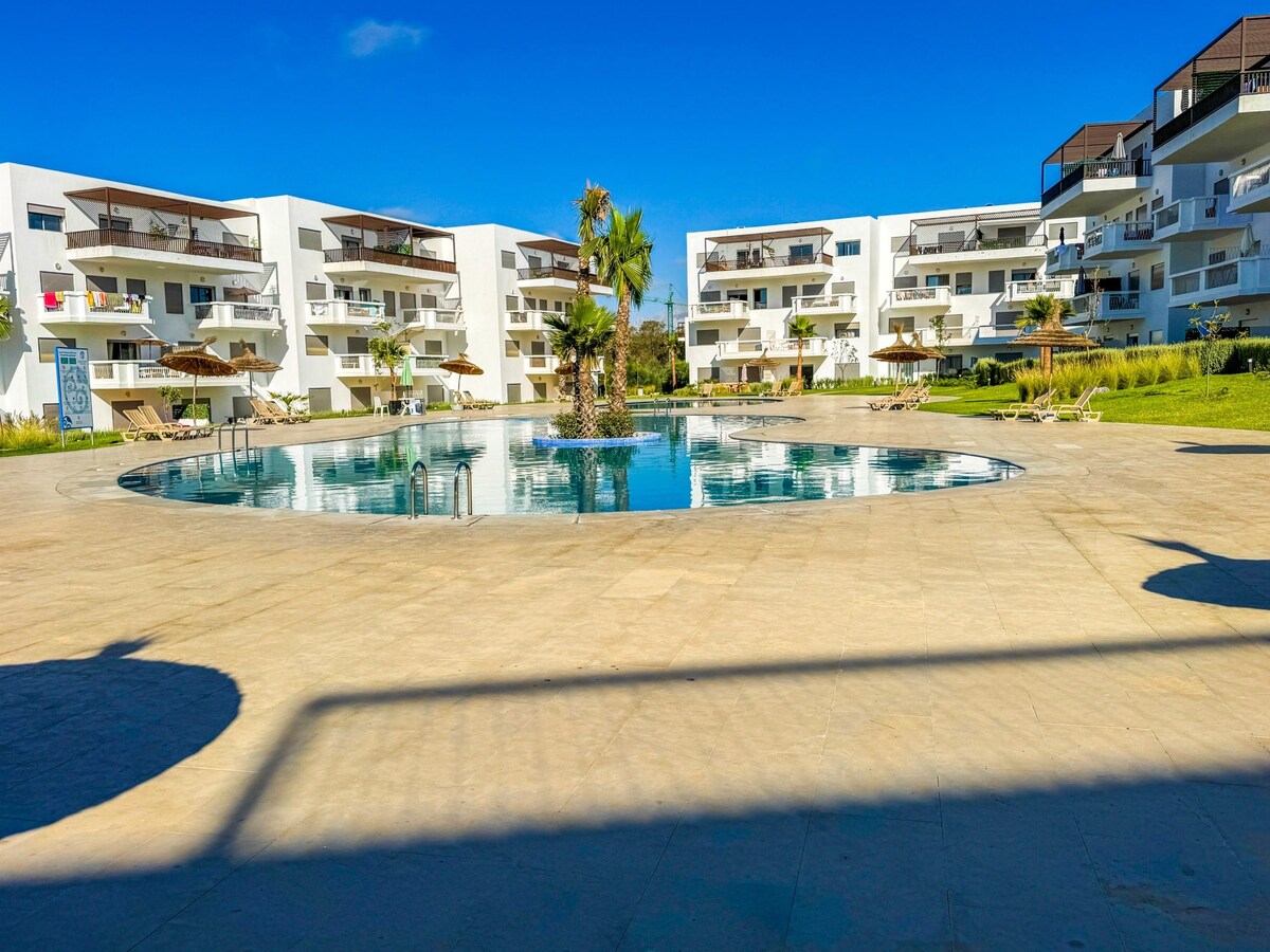 Mənzil bütün görməli yerlərə və imkanlara yaxın 2 yataq otağından ibarətdir. - Çimərlikdən 3 dəq məsafədə. - qarğıdalıdan 1 dəqiqəlik məsafədə. TGV stansiyasına və City Mall Tangier-ə piyada -10 dəq. -THEbuilding 24/7 təhlükəsizdir (girişdə kamera və konsyerj) . - Ərazidə pulsuz parkinq yeri var. - Binanın çölündəki hovuza piyada 5 dəqiqəlik məsafədədir. - Hovuz iyul və avqust aylarında açıqdır. - Hamı üçün əlçatan hovuz. 4 nəfər üçün pulsuz üzgüçülük, sonra 40 DH/extra pers.