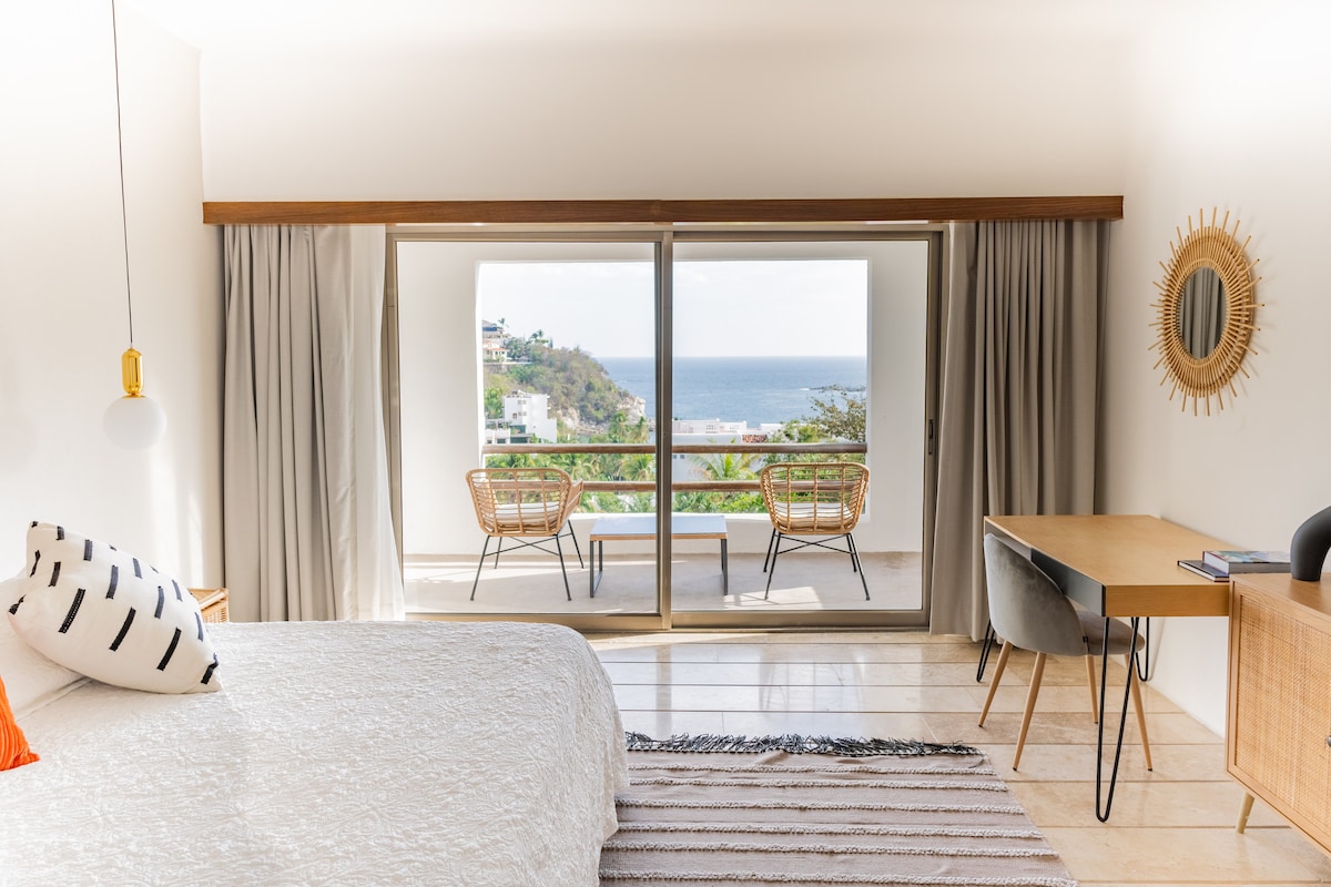Located in a private Huatulco community, Amanecer Coastal Casitas is a beachfront apartment that blends natural beauty with modern design and stunning Pacific views. Enjoy elegant interiors, large windows, and a spacious terrace perfect for outdoor living. The apartment includes bedroom suites, a gourmet kitchen, and high-speed fiber optic internet. The complex offers three pools, direct access to a semi-private beach, and easy entry to Arrocito Beach and its activities.