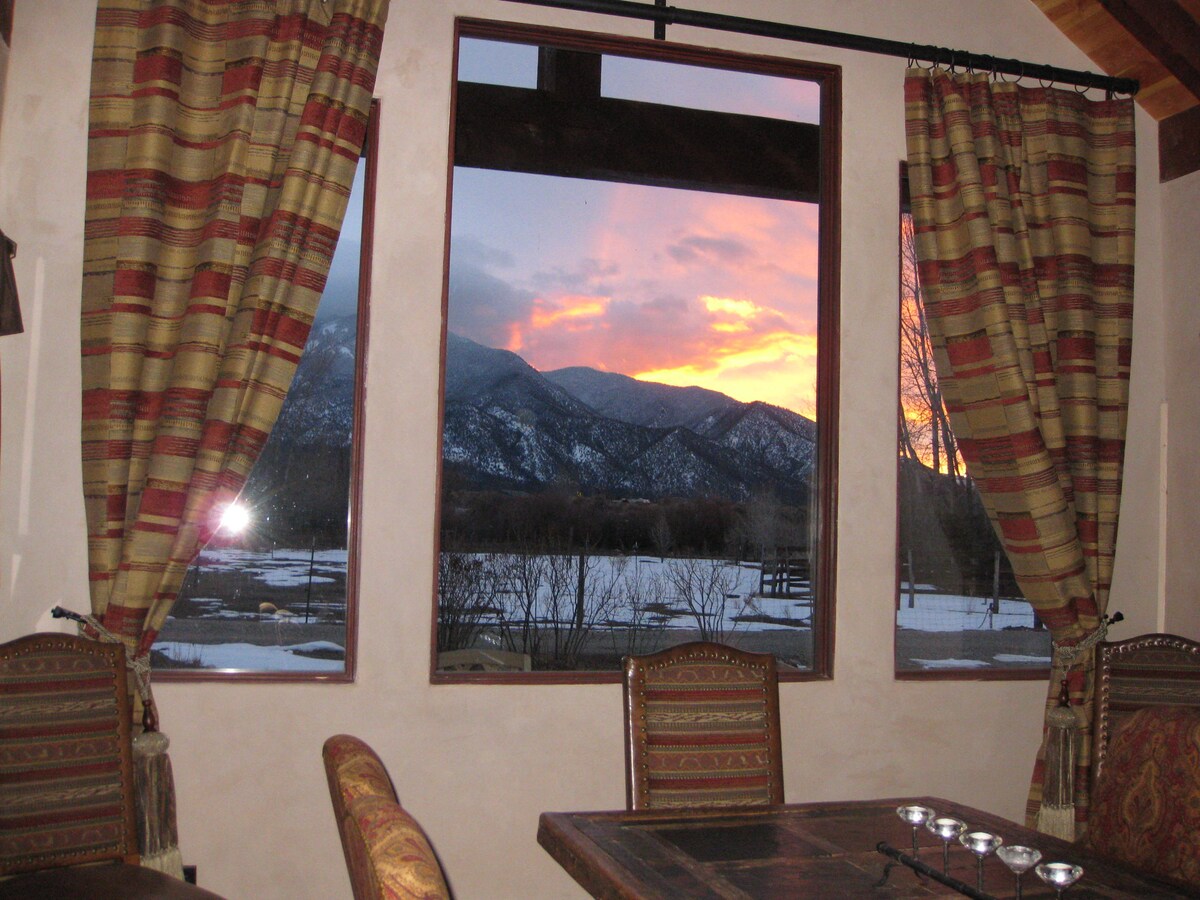 Taosda ən yaxşı mənzərə ilə valehedici adobe casita! El Pradonun tarixi ərazisində yerləşən Taos şəhər mərkəzinə 5 dəqiqəlik, Taos Vadisinə isə 15 dəqiqəlik məsafədə yerləşir. Seçilmiş antikvarlarla bəzədilmiş bu kiçik yerdə gözəl mətbəx və ənənəvi Nyu-Meksiko üslubunda köhnə Kiva buxarısı var. Ön pəncərələrdəki mənzərələr daha yaxşı ola bilməzdi və günəş şüaları sizi rahat buraxmayacaq. Əsl Nyu-Meksiko tətilindən zövq alın!