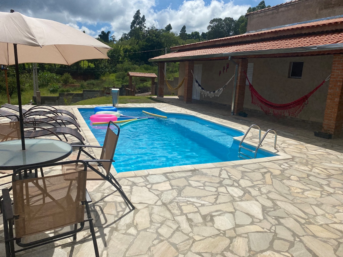 Dağ evi Sítio Terra Sertaneja-da yerləşir, kənddə möhtəşəm bir təcrübədən zövq alaraq dincəlmək istəyənlər üçün idealdır. Qonaqlar mövcudluğa uyğun olaraq pulsuz tərəvəz və yumurta toplaya bilər. Hidromasaj, Wi-Fi, parkinq və ayrıca barbekü sahəsi var. Üzgüçülük hovuzu, od çuxuru və oyun meydançası qonaqlar arasında paylaşılan məkanlardır. Yastıqlar, döşəkağılar və fond qazanı təmin edirik!Dəsmalı hovuza gətirin! Səhər yeməyi daxildir.