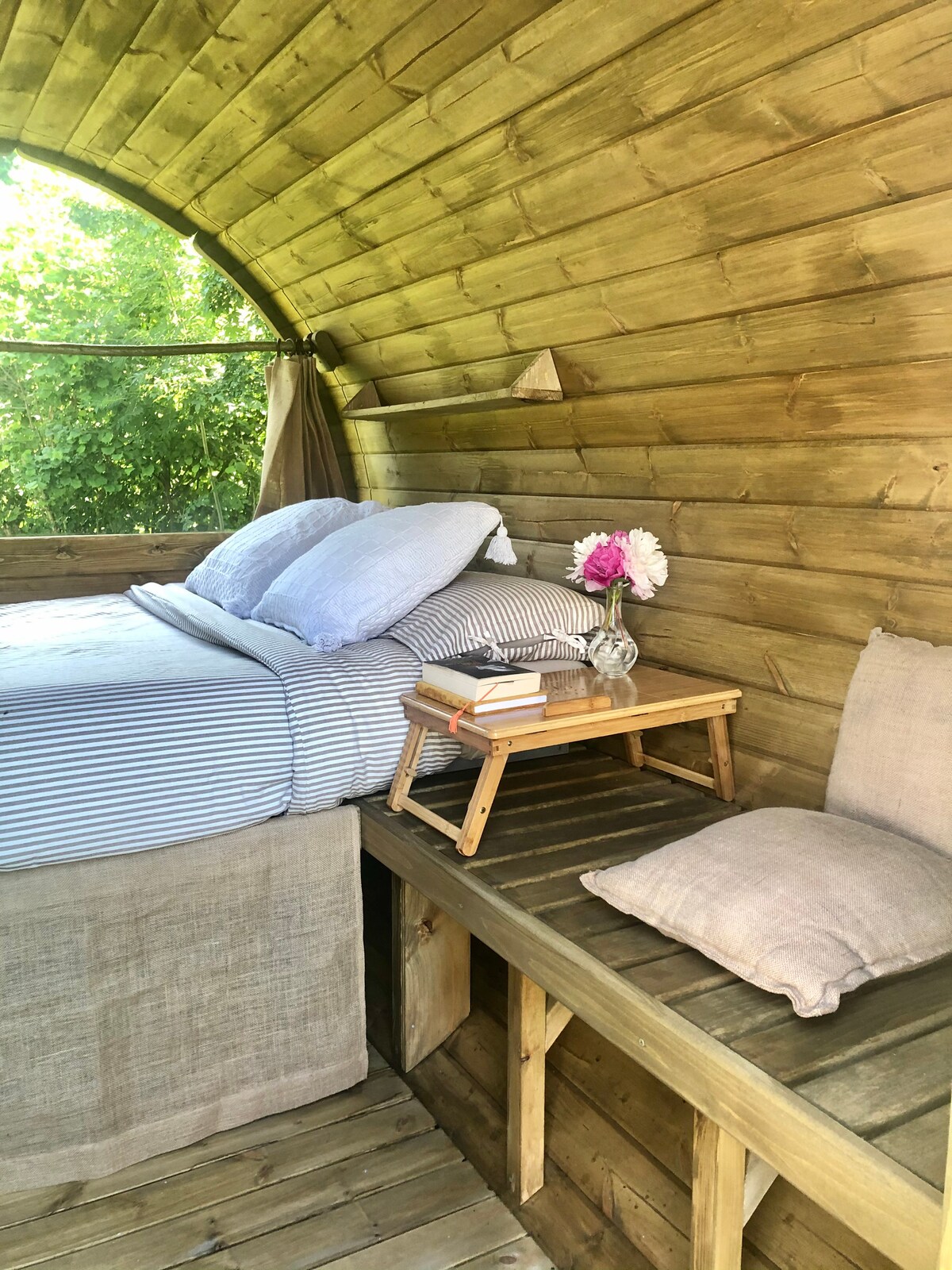 Tucked on a wild fertile mountain a 400 year old barn was renovated by artists with natural materials. It is crooked, it is colourful, it is wild and will throw you in an another universe for the time of your stay. You have to be nimble on your feet as the tiny access path is crooked and on a slope, and even the floor in the house tilted. A full immersion in a new world for total disconnection.