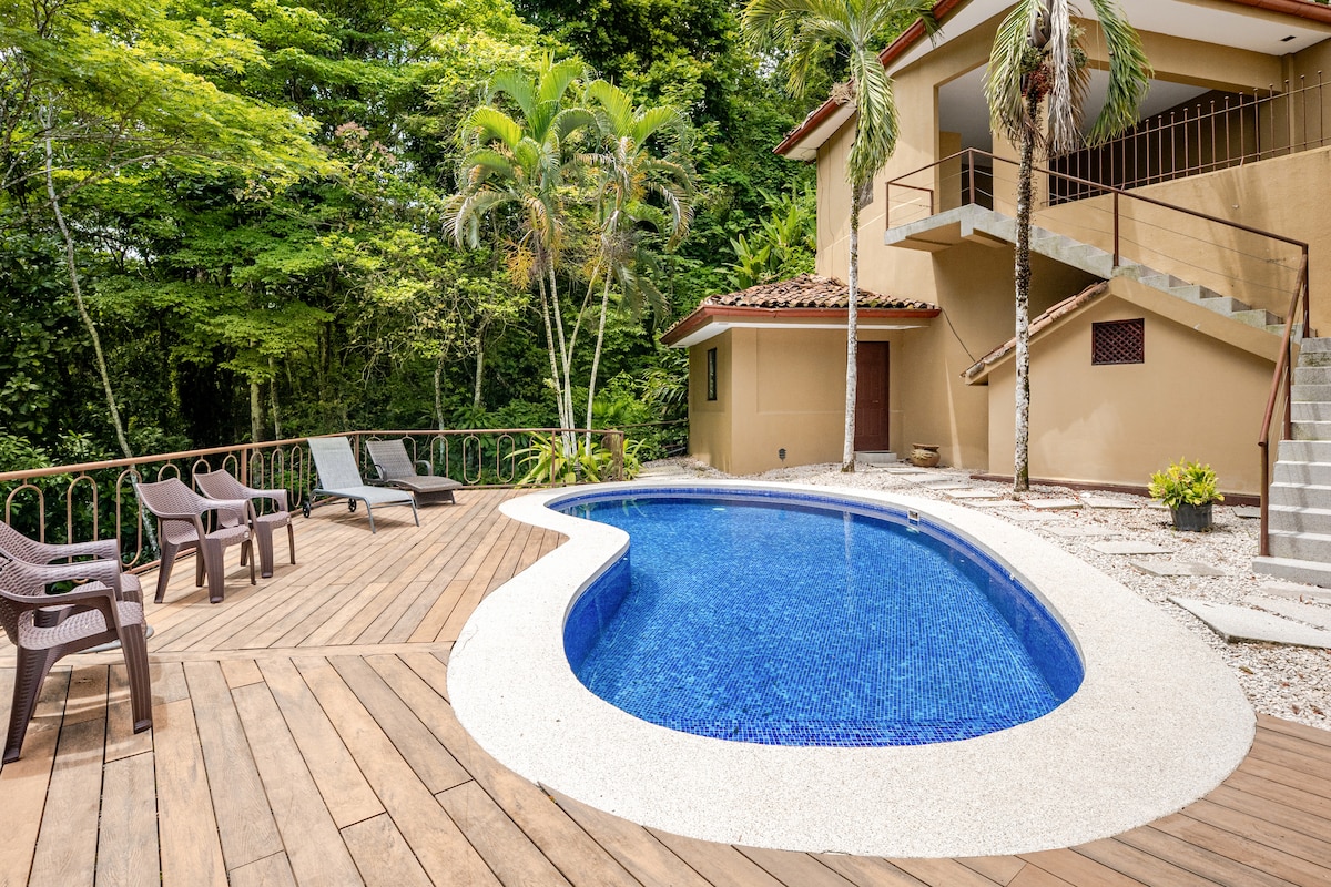 Modern suite surrounded by nature, just 2 min from famous surf beach Playa Hermosa (near Jacó). Comfortable space with 2 bedrooms (with A/C), 1 bathroom, and an outdoor covered kitchen/dining area. Relax on the terrace with garden views and spot white-faced monkeys, macaws, and toucans that visit daily. The guest suite is on the ground floor with private entrance but is part of our home where your host family lives. The fenced garden and parking are shared with us.