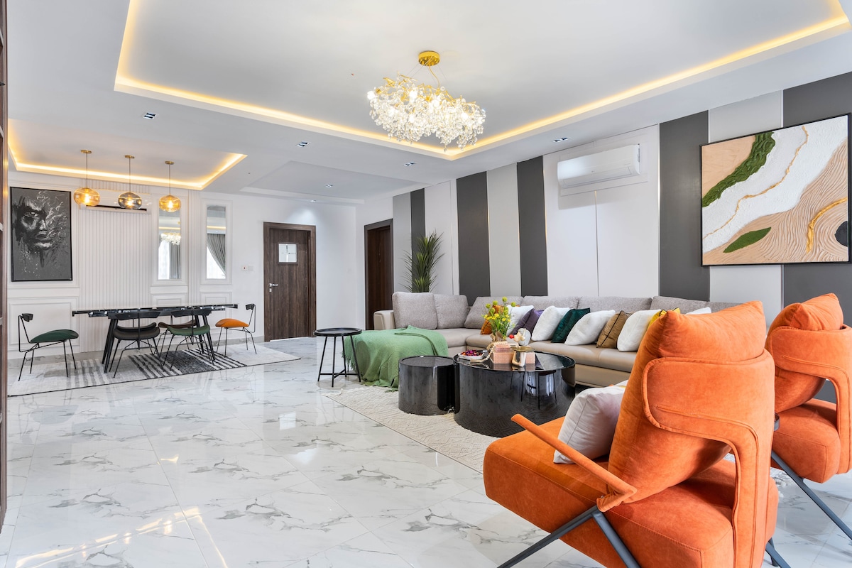 Hovuz, idman zalı, Starlink Wi-Fi, PS5 və gözəl dizayn edilmiş interyerləri olan bu geniş, dəbli 2 yataq otaqlı mənzildə lüks təcrübə yaşayın. Binada 24/7 elektrik enerjisi və təzə hazırlanmış yeməkləri sifariş edə biləcəyiniz mətbəx var. Lekki Faza 1-in mərkəzində rahatlıq və zəriflik axtaran cütlüklər, ailələr, işgüzar səyahətçilər və ya dostlarla qrup səfərləri üçün mükəmməldir.