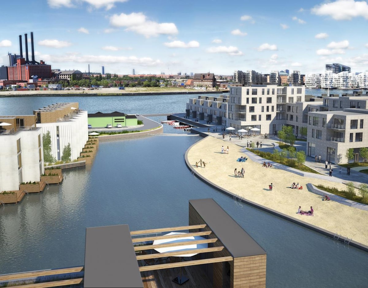 Bu, birbaşa suya mənzərəsi olan gözəl 140 m2, 3 yataq otaqlı mənzildir. İki vanna otağı var. Mənzərədən və günəşdən zövq almaq üçün iki geniş teras. Yeni Weber Q3000 qazqril mövcuddur. Onun yeri Kopenhagenin mərkəzindən cəmi 2 km məsafədə yerləşir (Rådhuspladsen). 7A nömrəli avtobus mənzildən cəmi 300 m məsafədədir və birbaşa mərkəzə gedir. Uyğunlaşmanı təmin etmək üçün açarın mərkəzi qatar stansiyasına yaxın bir mağazada seçilməlidir.
