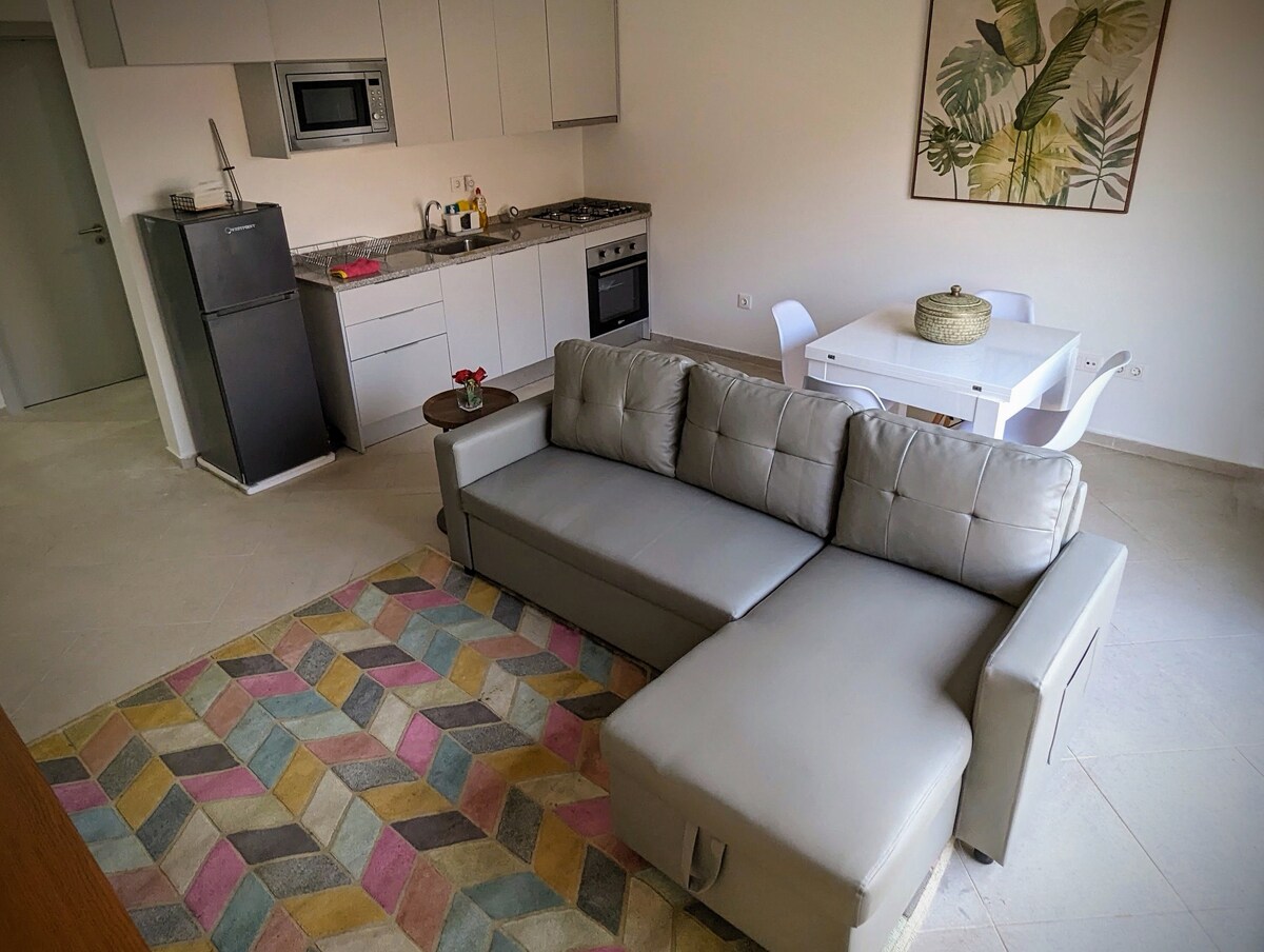 Modern 1BR apartment in one of Tarrafal’s best areas, minutes from Tarrafal Beach. Enjoy sea views, fast Wi-Fi, AC, a fully equipped kitchen, and a stylish living space with Smart TV. Perfect for couples or remote workers seeking comfort and convenience. Located in a quiet, safe building with easy access to restaurants, shops, and transport. Your ideal stay in Tarrafal Bay.