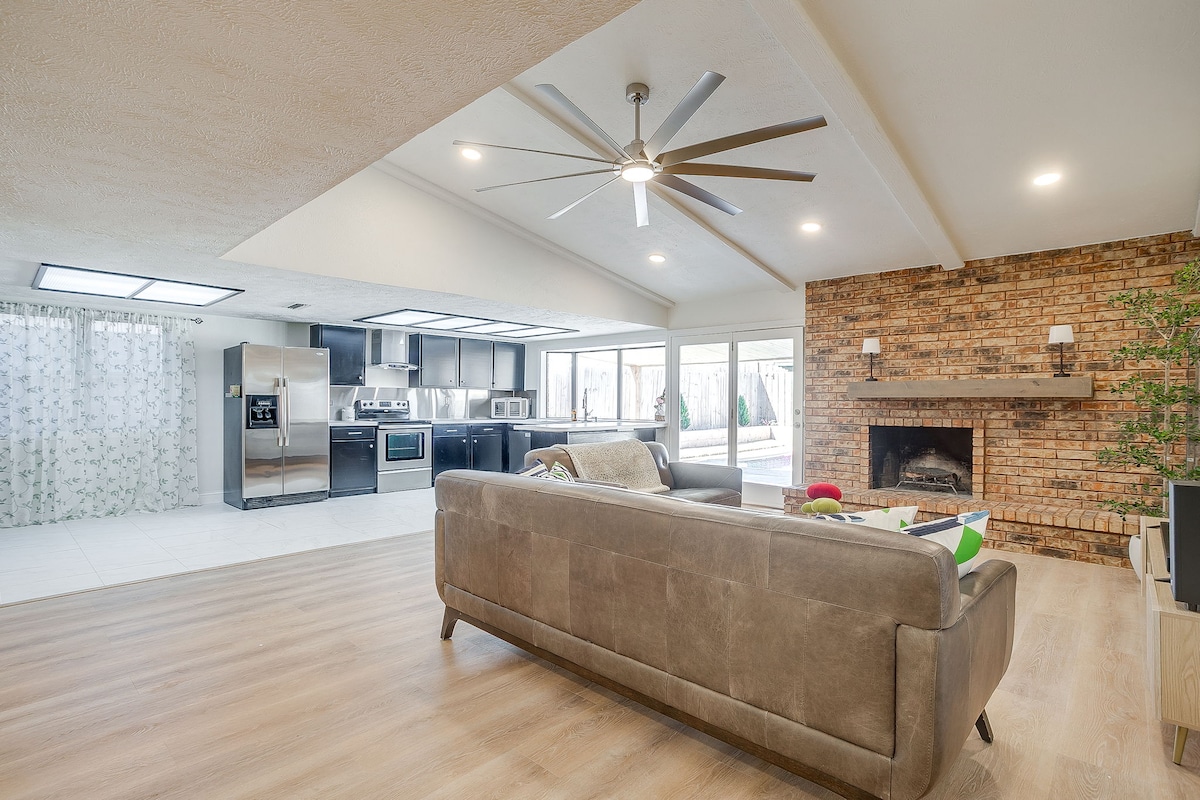 Relax beneath a grove of pecan trees in this peaceful hideaway near I-20 and I-35. Drive 15 minutes to downtown or west 7th, 10 minutes to Magnolia Ave, and 20 minutes to the Stockyards. Professionally designed and renovated, the home includes a large, fully stocked kitchen with a reverse osmosis-filtered water tap and complimentary tea and coffee bar. End your day with a campfire and s'mores under the string lights and flowering vines in the backyard.