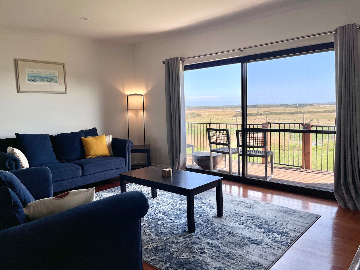 " Beautiful views, stunning location, great quality and modern rustic decor" - L.2025 We welcome you to enjoy this boutique romantic accommodation for 2 with amazing 180 degree views over rolling hills to Fish Creek and beyond from every window. Spacious and self contained with a sunny modern comfortable artistic interior. Close to Wilson's Promontory, Fish Creek, Foster, Waratah Bay, wineries and beaches. The perfect base for exploring South Gippsland.