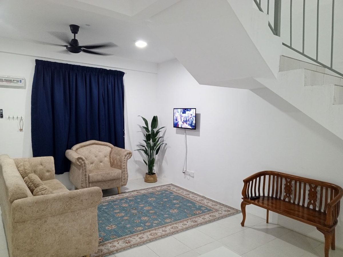 Rahat Terras Homestayımızda Bütün Ailə ilə dincəlin! Ailələr, kiçik qruplar və ya işgüzar səyahətçilər üçün mükəmməl olan geniş 3 otaqlı, 2 otaqlı terras evimizdə komfortdan zövq alın. Sahəsi 1071 kv. metr olan (avtomobil eyvanı da daxil olmaqla 1,540 kv. metr) evimiz rahat istirahət təklif edir. "Evdən uzaqdakı eviniz" kimi dizayn edilmiş səfəriniz üçün rahat və yaddaqalan qonaqlama təmin edərək təmizliyə, rahatlığa və halal yönümlü mühitə üstünlük veririk.