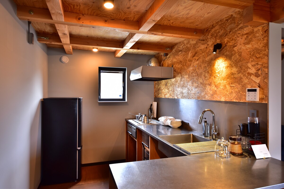 [Memar sahibinin xüsusi diqqət yetirdiyi qonaqlama] Rütubətə davamlı sauna, su vannası və yüksək keyfiyyətli LDK | Seçim olaraq Yapon mal əti və mal dili teppanyaki