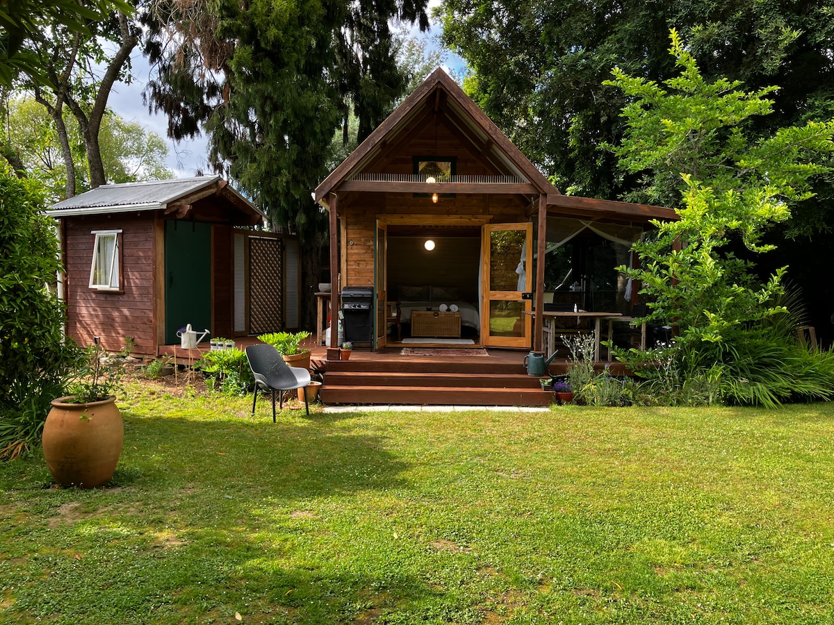 Glamping (Luxury Camping) 50-dən çox meyvə və qoz ağacı olan bol Permaculture bağında. Bağlar, çiçəklər, ağaclar, yerli quşlar və toyuqlar arasında rahat Kraliça çarpayısı olan xüsusi və dinc xüsusi ağaclı çadırdan zövq alın. Öz-özünə idarə olunan zonanızda, düz axınımızın yanındakı sulu ətrafda istirahət edəcəksiniz. Əmlakda yalnız bir çadır var. Təbiətin qoynuna icazə verin! Kahurangi və Abel Tasman Milli Parkları ilə çimərlikdən 600 metr məsafədə kəşfiyyat qapınızın ağzındayik.