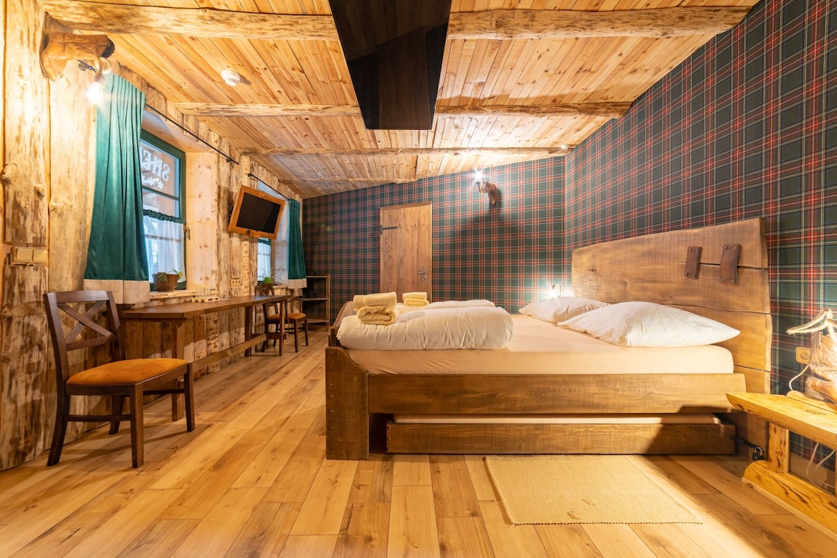 Táto dvojlôžková izba, nazývaná Room Rider Engi, sa nachádza na prízemí a je možné do nej pridať výsuvnú prístelku, čo poskytuje väčší komfort a flexibilitu pre našich hostí.