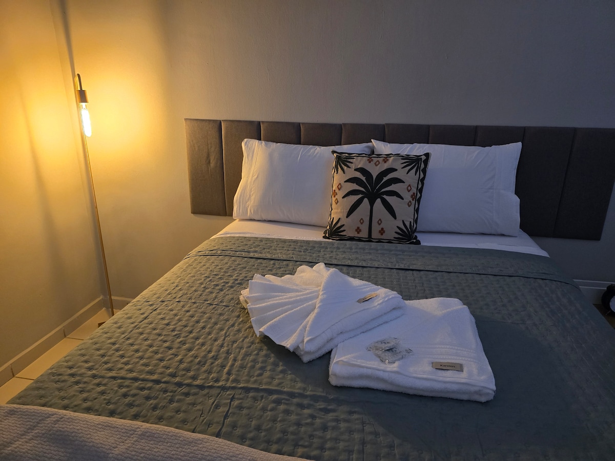 Tam mənzil. 2 yataq otağı (1 ikinəfərlik çarpayı və 2 birnəfərlik çarpayı) - 1 hamam otağı - Qab-qacaq (qəhvə maşını, sendviç və s.), yemək masası və mikrodalğalı soba ilə təchiz olunmuş mətbəx. - 2 divan və Ağıllı Tv olan otaq. - Paltaryuyan maşını olan xidmət ərazisi - Balkon Çox yaxın: - Padariya, - Məşq zalı - Restoranlar/hamburgerlər - Taubaté AVM - Avtobus dayanacağı - Kvadrat - Camaşırxana - Bazar Yataq və hamam dəstləri mövcuddur. LİFT YOXDUR (1-Cİ MƏRTƏBƏ).