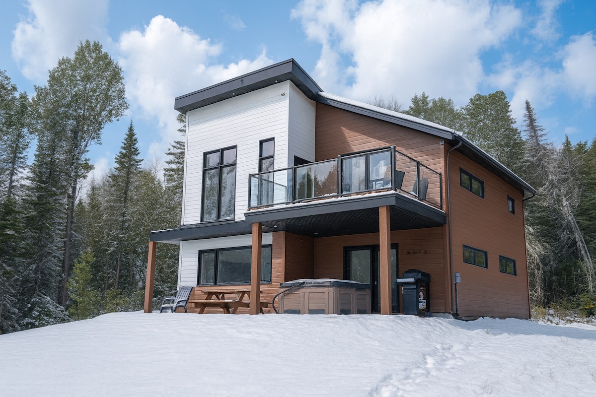 Small moderne warm Cottage! Come relax, unwind and fully rest! Be surrounded by several pine trees. This cottage can greet 2-4 adults (+1 child). You have WiFi and electric fireplace. Its time to disconnect from your daily life with its SPA as well as an outdoor GAZÉBO to fully enjoy it while watching the beautiful views of the mountains! Fishers, snowmobilers and ATV’s its the ideal place for nature lovers. Motorcyclers you will enjoy the road! Access to the river is a 5 min walk! Book Now