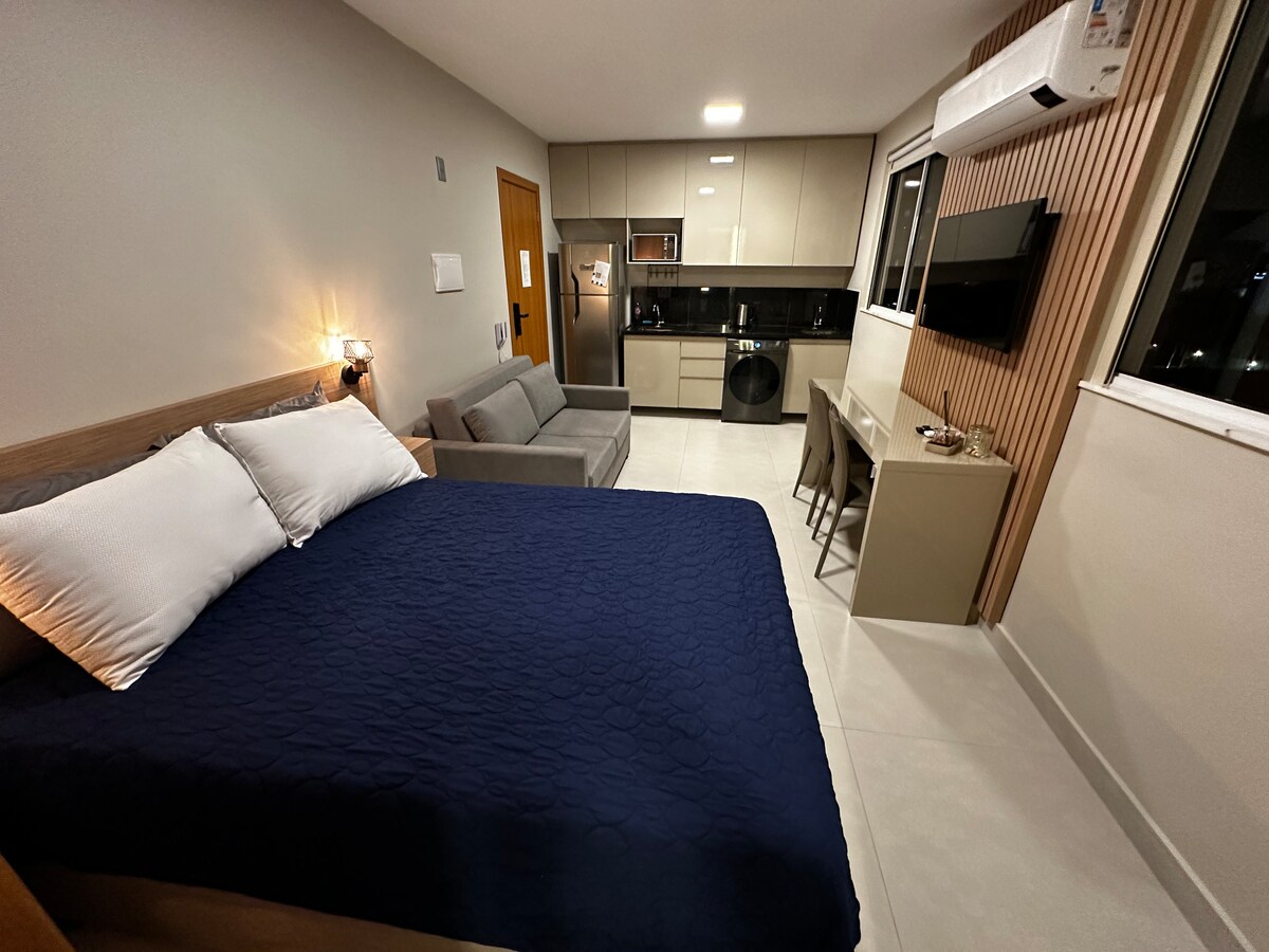 Lüks loft, 45 m2, kondisioner, 4 nəfərlik masa və piştaxta, tam və təchiz olunmuş mətbəx, paltaryuyan maşın, paltaryuyan maşın. Nespresso və digər praktikalar. Kraliça çarpayısı, 1 divan çarpayısı və Smart TV 55'' c Wi-Fi və net ilə çox genişdir. Gözəl mənzərə! Ümumi açıq hava məkanı: Tam idman zalı, camaşırxana, qızdırılan hovuz, cakuzi və sauna. Diamond, Hosp. Materdei, BH Mərkəzi Bazarı, Supernosso və s. 1 vakansiya və 24 saat konsyerj Özünüzü evinizdəki kimi hiss edəcəyiniz imkanlar!
