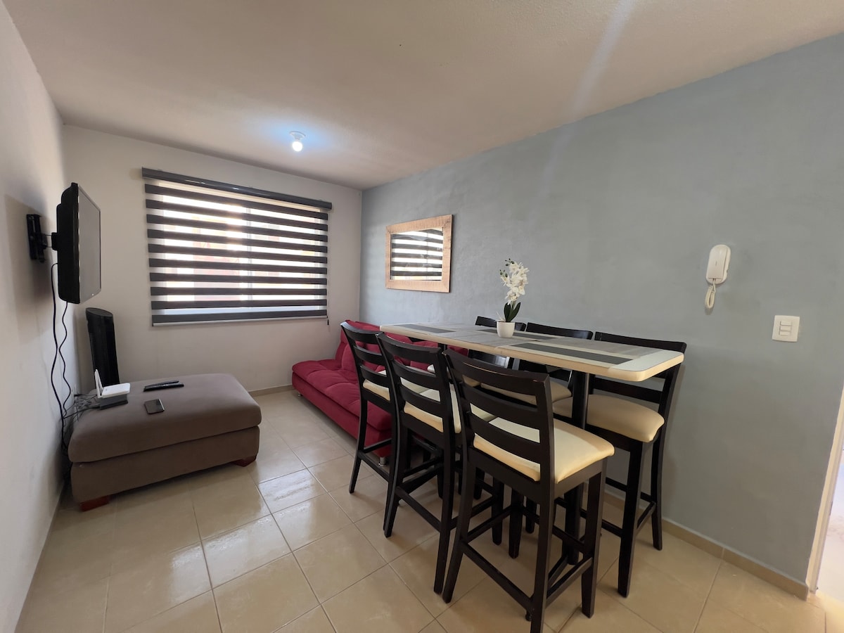 Ojo de Agua Edo mex-də yerləşən AIFA-dan (7 km) 6 dəqiqəlik məsafədə, xüsusi və rahat mühitdə bütün əsas imkanlara (Mətbəx, soba, internet, isti su, netflix) malik mənzil. Ətrafınızda 3 km-dən az məsafədə restoran, bar və ya əyləncə mərkəzləri, parklar, eləcə də kommersiya meydanları tapa bilərsiniz.