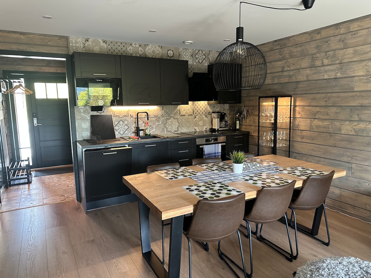 60 kvadratmetr və 7 çarpayılıq rahat dağ evi divan çarpayısı olan qonaq otağına, tam təchiz olunmuş mətbəxə, iki yataq otağına və saunası olan hamam otağına, eləcə də barbekü ləvazimatları olan cənuba baxan terrasa bölünür. Pulsuz Wi-Fi/internet, Chromecast vasitəsilə TV və pulsuz parkinq. Xizək sürmək. Nəzərə alın ki, yekun təmizlik daxil deyil. Təmizləyin və özünüzün bir vəziyyətdə saxlayın. Təmizlik avadanlıqları mövcuddur :) Endirimli həftəlik qiymət.