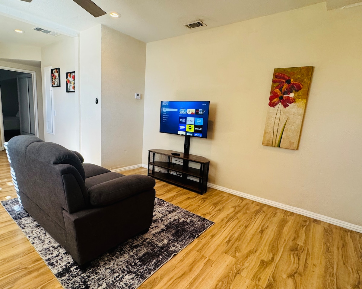 Welcome to our cozy retreat in Tehachapi, California, Boho On Brentwood! Nestled amidst the picturesque landscapes of Tehachapi, our AirBnb offers an escape from the hustle and bustle of everyday life. Our AirBnb is a well-appointed 4-bedroom that can comfortably accommodate 8 guests. It features 2 bathrooms, a fully equipped kitchen, a spacious living area, game room, and an outdoor lounge area under a spacious patio with mountain views!
