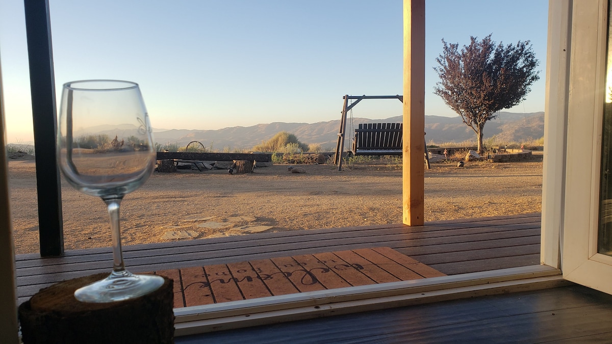 Enjoy the lovely setting of this romantic spot in nature. Sky View Ranch is an off grid, private, and secluded place to getaway, unplug, and relax. Come enjoy the 360 mountain views as well as the Tehachapi town lights. By day you may see eagles, deers, and cows. By night you'll see brilliant stars and even shooting stars if you're lucky. You'll have the feeling that you're far away, but town is only a 6 min. drive to stores, restaurants, Tehachapi historic downtown, glider port etc.