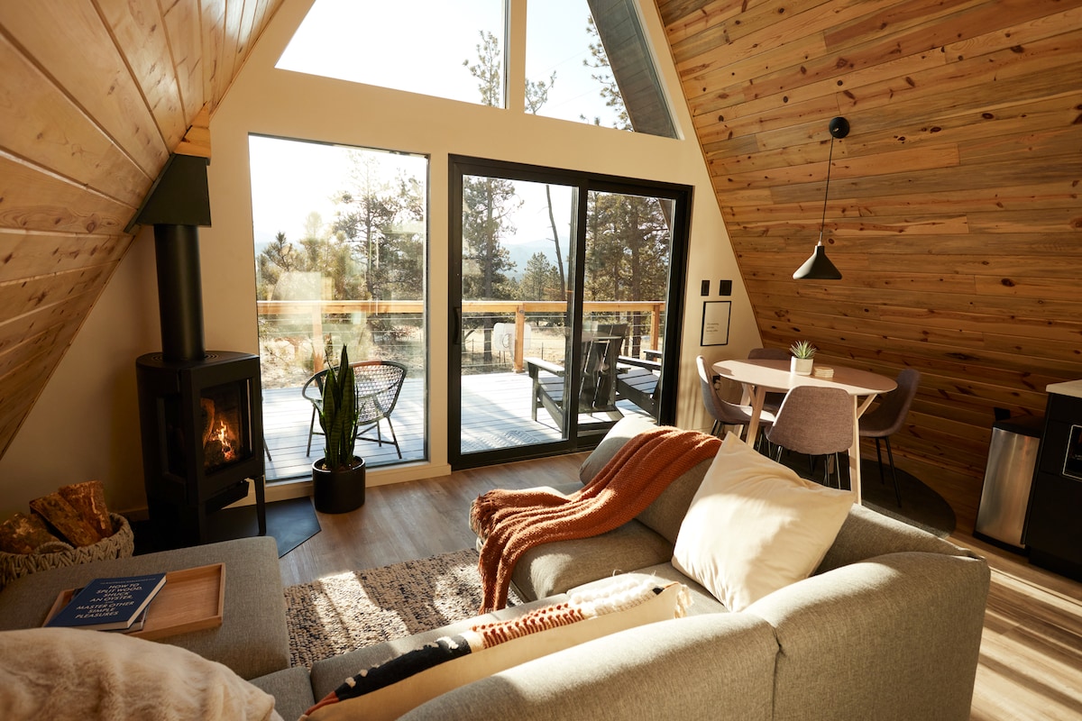 Escape the city in this beautiful Scandinavian-inspired A-frame. Sitting on 2 wooded acres overlooking Pikes Peak, Elwood's A-frame has been newly remodeled with top-of-the-line amenities including a hot tub, Norwegian gas fireplace, quality bedding, and a spa-like shower. Relax on the large deck and listen to your favorite music on our Sonos system, play games with friends, read, day trip to lakes and hikes, make memories, refocus, rejuvenate, and relax in this intentionally curated experience.