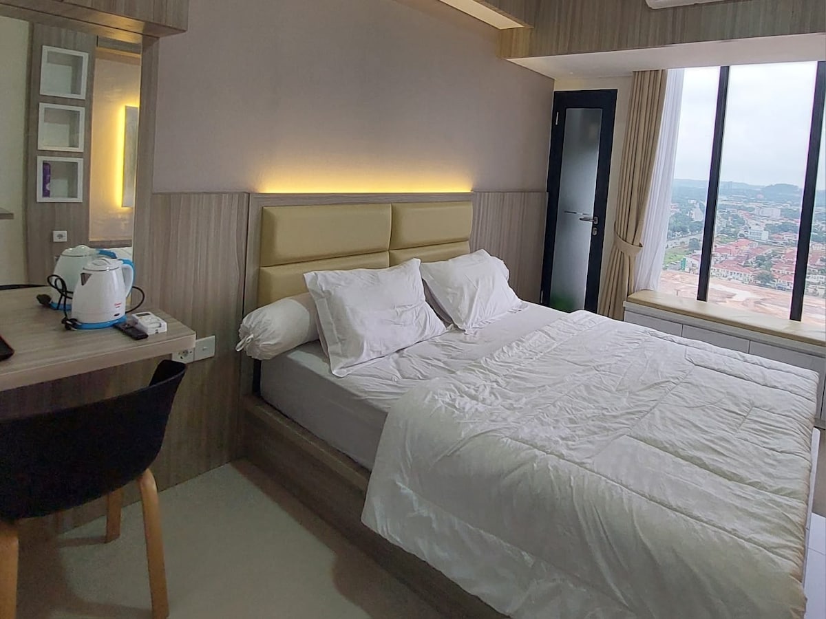 Mənzil 51-ci mərtəbədə olduğuna görə baxışlarınız bloklanmayacaq. Strateji baxımdan Batam adasının mərkəzində yerləşir. Hər yerdən bir neçə dəqiqə uzaqda (ticarət mərkəzləri, Starbucks, KFC, McDonalds, saç salonu, geyim mağazaları, kafelər və s.) Səhər asanlıqla qəhvə qəbul edə və mənzilin aşağısında sərin pivəxanada sərinləyə bilərsiniz.