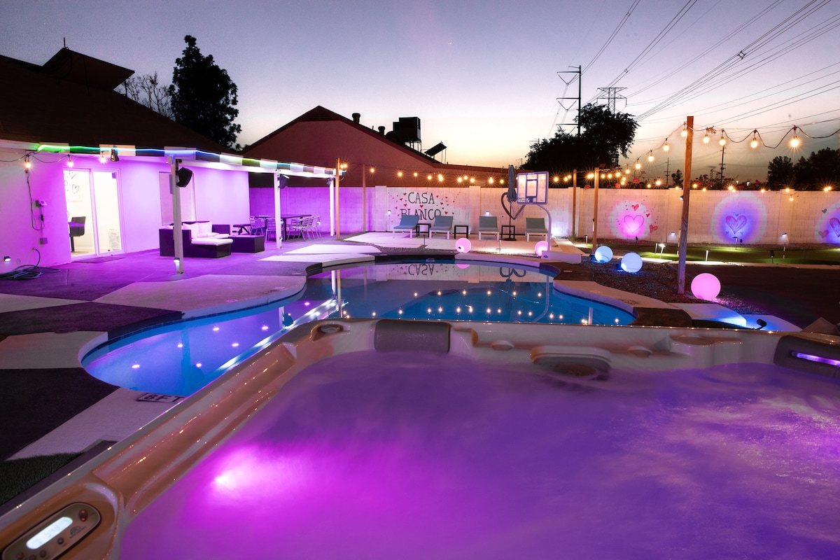 Casa Blanco Tempe a unique Airbnb experience Freshly updated single level family in prime Tempe location. 15 mins from ASU & 16 mins away from Phoenix Sky Harbor International Airport. Brand new furnishing throughout this entire Four bedrooms, 2.5 baths ⭐️ pickleball net included with paddles and balls ⭐️Basketball court with basketball outside ⭐️Best outdoor lighting experience ⭐️backyard now has a pool table🎱 ***OUR POOL IS NOT A HEATED POOL***