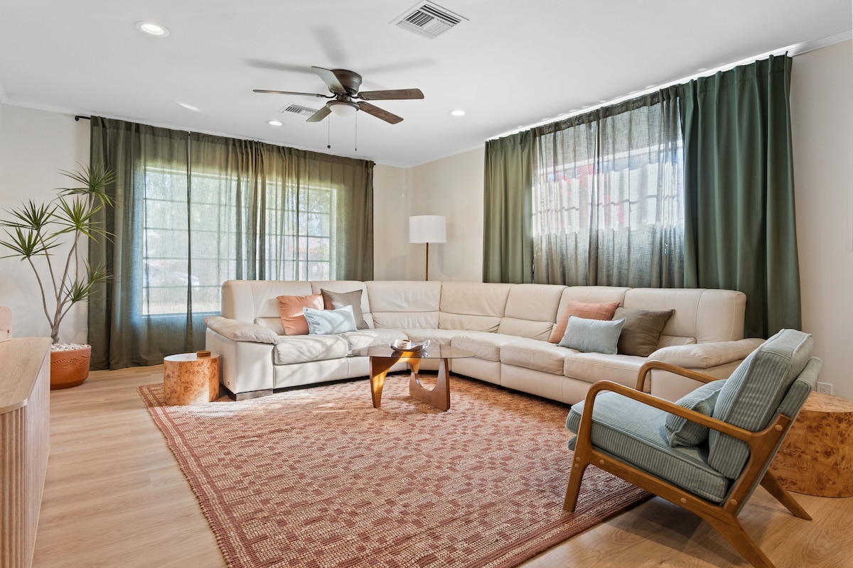 Tempe-də Scottsdale-dən cəmi 1 blok cənubda yerləşən bu tətil icarəsi hər yerdə sintetik otları olan geniş tam qapalı arxa həyəti olan 3 yataqlı, 2 yataqlı, 1,650 kv metrlik bir ailəlik ev, 6 dəlikli yaşıllıq, 6 nəfərlik cakuzi, 4 yanar Veber barbekü qril və 6+ qonaq üçün kurort kimi istirahət yeri təklif edən hovuz sahəsi təklif edir. Hər bir otaqda LED ağıllı televizor var, 65 düymlük LG televizoru isə qonaqlarımızın son əyləncələrini təmin edən arxa verandada asılıb.