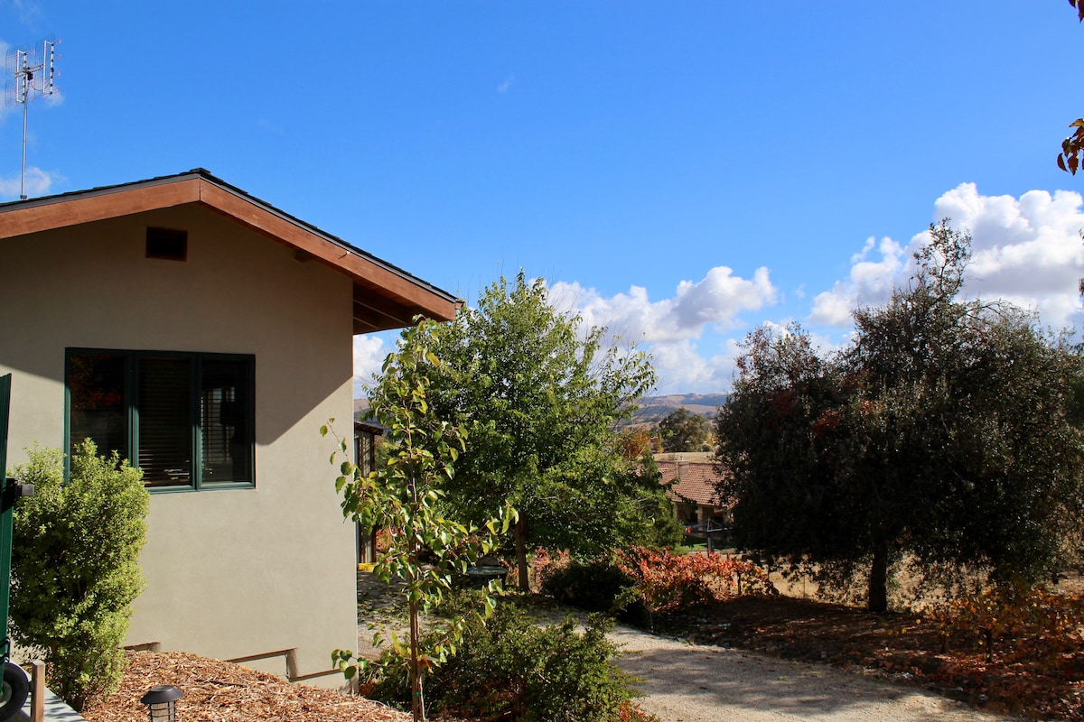 Bu ayrıca birotaqlı, bir yataqlı qonaq evi Westside Templetonda sakit bir zolaqda iki hektarlıq bağlamanın arxa tərəfində yerləşir. Templeton Gap-da yerləşən tarixi şəhər mərkəzi və ətrafdakı onlarla şərab zavoduna cəmi bir neçə dəqiqə qalıb. Bu bölmədə mətbəx ləvazimatları, Wi-Fi, kondisioner/qızdırıcı, tavan ventilyatoru və televizor var. Qəhvə və çay təmin edilir. Ayrıca qonaq girişi. Parçalanmış qranitdə qısa bir sürücü. Öz-özünə yoxlama/çıxış üçün açarsız giriş.