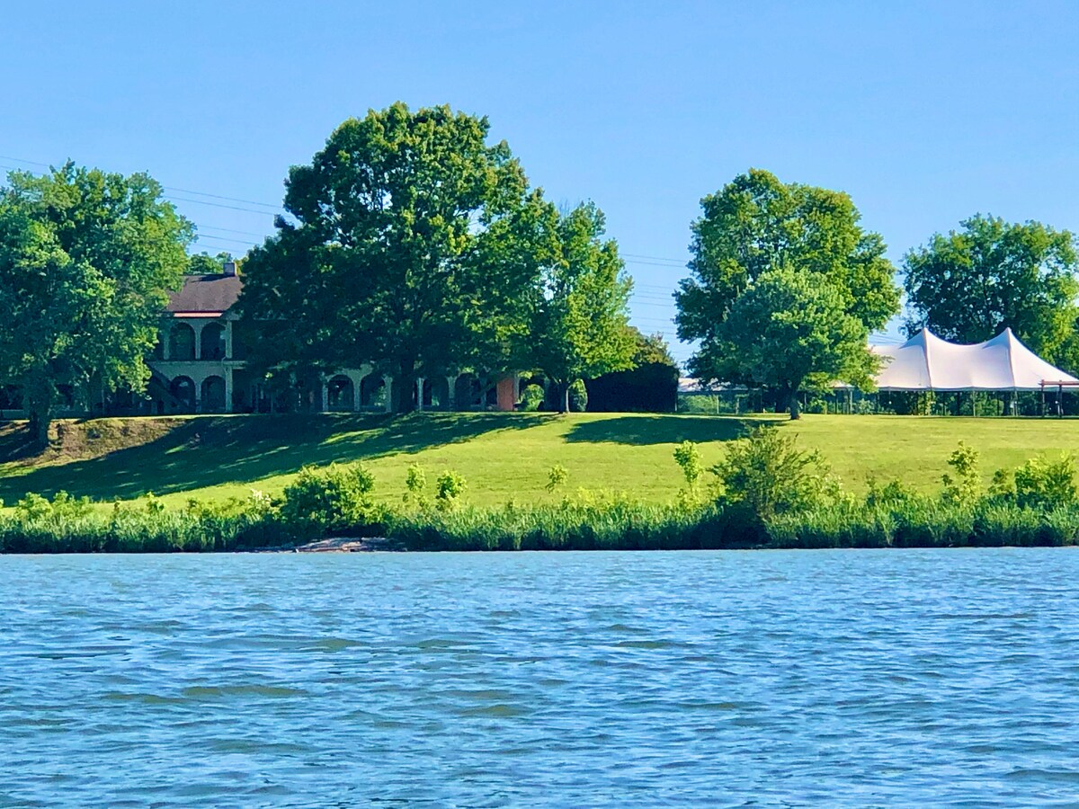 Located on a 135-acre farm with a commanding 1/2 miles on the banks of the Tennessee River, the Main Villa at Tennessee RiverPlace is only 15 minutes from downtown Chattanooga! Please note: We are also an event venue, and it is possible that an event may be taking place in the downstairs spaces during your stay. We kindly ask that you be respectful of the event, its guests, and any associated noise. Please do not enter or join the event — doing so may result in being asked to leave the property.