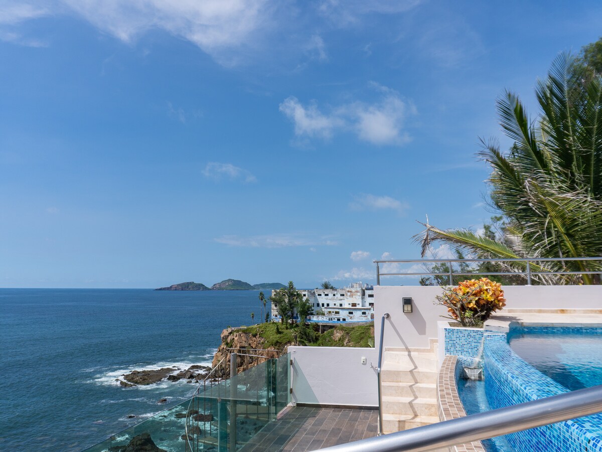 Bu eksklüziv mənzildə Matzatlanı yüksəkliklərdən kəşf edin. Lüks tərtibat, queen ölçülü çarpayıları və televizoru olan 2 yataq otağı, okean kənarında eyvanı olan geniş qonaq otağı və tam təchiz olunmuş mətbəxdən zövq alın. Burada möhtəşəm dam hovuzu da var. Malekonun qarşısında və Qızıl Zonadan bir neçə addımlıq məsafədə yerləşən bu məkanda çimərliklərə, restoranlara və gecə həyatına dərhal çıxış imkanınız olacaq. Rahatlıq, inanılmaz mənzərələr və mükəmməl mövqe axtaranlar üçün idealdır.
