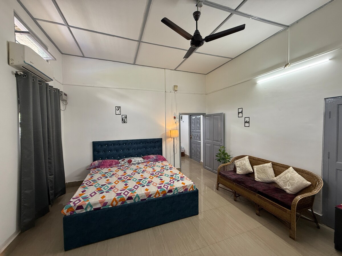 Səyyahlar,cütlüklər, ailə,tələbələr və iş/biznes peşəkarları üçün ideal balkonu olan canlı və estetik ev. Qonaqların 1-ci mərtəbədə bütöv 2bhk-ə çıxışı olacaq. Evimiz ISBT-dən 500 metr, Milli Magistrala isə təxminən 600 metr məsafədədir. Autos, Rickshaws,Rapido və Cab xidmətləri mövcud nəqliyyat növüdür. Ərzaq mağazaları, restoranlar,avtobus dayanacağı, avtodayanacaq evimizdən cəmi 500 metr məsafədədir. ** Gündə 300/- əlavə tutulacaq kondisioner **