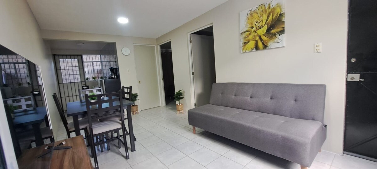 Sakit və təhlükəsiz bir yerdir ki, bu da sizə çox rahatlıq bəxş edəcək. Sağ-salamat evdə olacaqsınız. Mərkəzi ev şəhərin mərkəzindən 3 dəq məsafədə , iki nəfərlik çarpayısı olan 2 yataq otağı və 1 divan-çarpayı. Oxxo, mağaza və restoranlara yaxındır. Ailənizlə bir neçə gün keçirmək üçün idealdır.