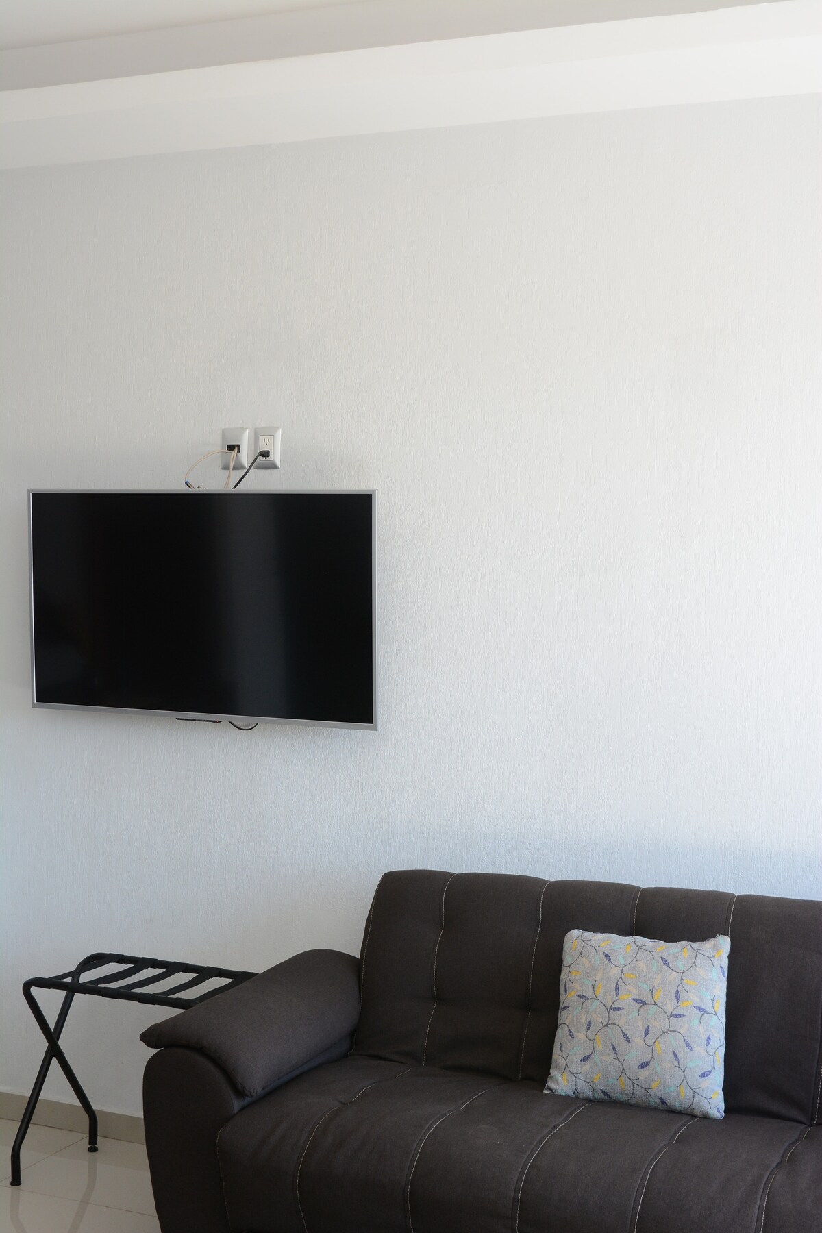 Pequeño departamento tipo loft con 1 cama king size, cocineta con estufa eléctrica, lava trastes, microondas, frigobar y utensilios básicos de cocina (cucharas, cuchillos, vasos, tazas, etc), comedor, estancia, tv, maletero, mueble para colgar y doblar ropa, baño completo y balcón con increíble vista panorámica. Además el rooftop que está en el último piso está disponible para todos los huéspedes, ahí podrás tener una maravillosa vista panorámica de la ciudad y ver el bello atardecer 🌅