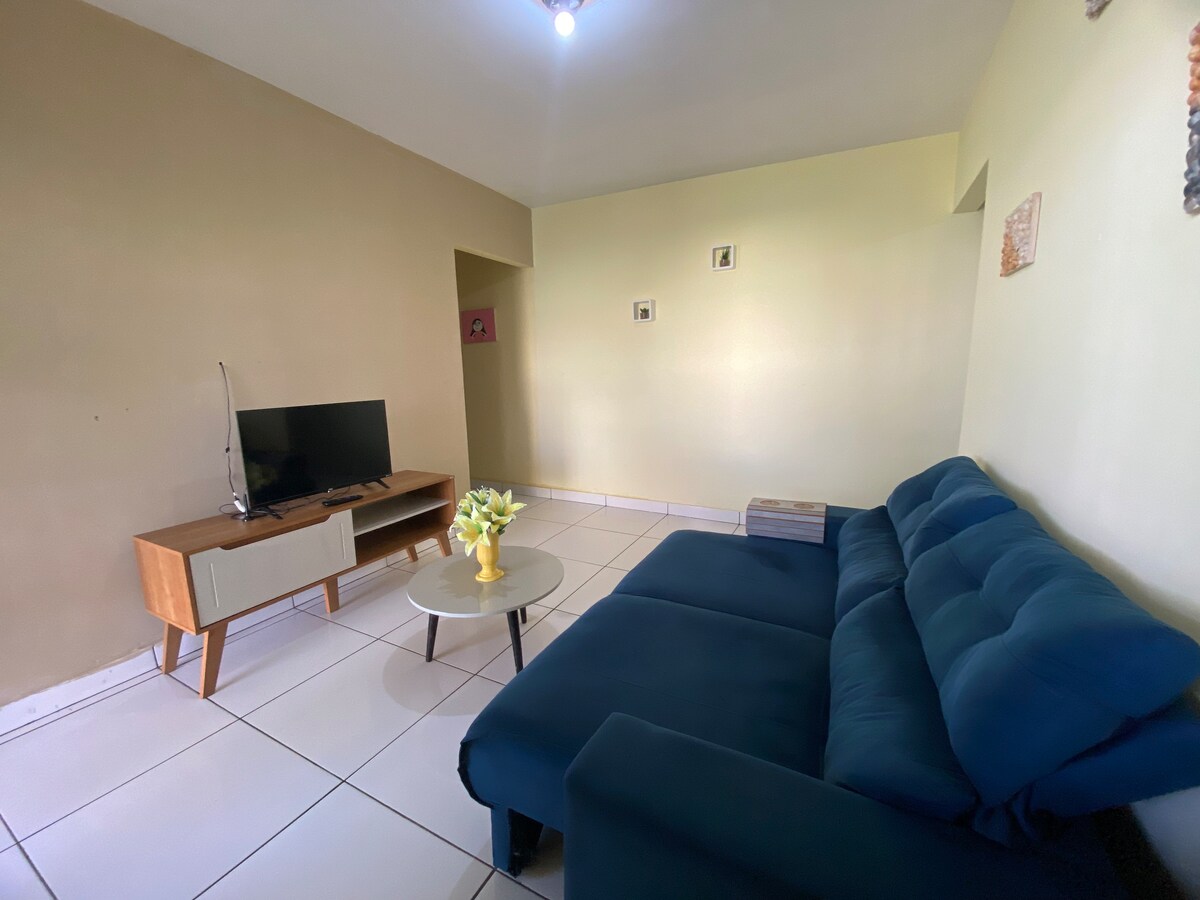EV HEYVANLARINI QƏBUL EDİRİK. KONDİSİONERİMİZ VAR. PULSUZ PARKİNQ. BÜTÜN EV QONAQ ÜÇÜN. Qonaq otağı, mətbəx, iki yataq otağı, eyvan, arxa həyət və bağçası olan tam mebellə təchiz olunmuş ev. Supermarketin qarşısında (küçənin tam qarşı tərəfində), çörək mağazasından 300 metr, aptekadan 250 metr, Mərkəzdən 3,5 kilometr, Hava Limanından 5 kilometr, Avtovağzaldan 7 kilometr, Mərkəzi Yarmarkadan 4 kilometr, UfMS-dən 4,5 kilometr və Bioparque Pantanal-dan 9 kilometr məsafədə yerləşir.