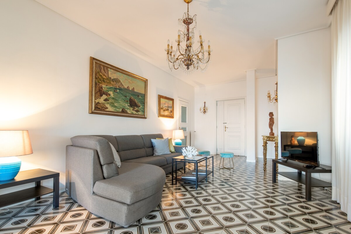 Gözəl mənzil 2021-ci ildə tamamilə təmir olunub. Mənzil liftsiz qədim binanın ikinci mərtəbəsində yerləşir. Mənzil Aralıq dənizi üslubunda zövqlə təchiz edilib və ikinəfərlik çarpayı oturma sahəsi, tam mətbəx mərmər masası və 4 stul,böyük qardarobe, 1 televiziya daxildir və o, bütün konfet və xidmət, istilik və kondisioner,internet Wi-Fi ilə təchiz olunub. Sorrento yarımadasının heyrətamiz mənzərələri ilə dənizə baxan mənzil