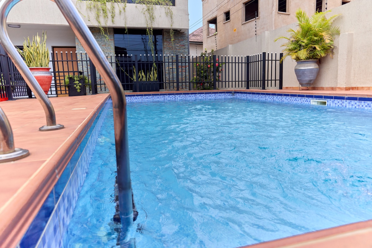İkonik İmza Mənzillərində yerləşir - hava limanından cəmi 10 dəq məsafədə! Biznes, istirahət və ya Qanadakı ilk sərgüzəştiniz üçün buradasınız? 24/7 təhlükəsizlik, etibarlı enerji ehtiyatı, isti su və sürətli/dəyişdirilməmiş WiFi-dan zövq alın. Qonaqlar dəqiq fotoları və dəbdəbəni sevir. A La Lune restoranına və Enigma Sky Bar-a giriş hovuzları, idman zalı, oyun otağı, ayrıca teatr, lift gəzintiləri. Üstəlik, ərazidə supermarket və aptek var. East Legon, Spintex və Accra Mall-a yaxındır. Rahatlıq, komfort və üslub üçün indi bron edin.