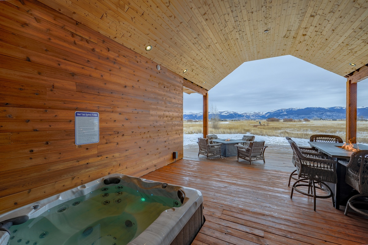 Təsəvvürlərimizdən və geniş ilhamlardan tikilmiş müasir və köntöy kabinə. Rahat, sosial, əyləncəli tətil üçün nəzərdə tutulmuşdur; böyük həyət, örtülü göyərtə, cakuzi və Grand Tetons mənzərəli saunası var. Qurman mətbəxi və ustensilləri ilə təchiz olunub. Grand Targhee və Teton çayından bir neçə dəqiqəlik məsafədə yerləşir. Grand Teton NP və Yelloustona gözəl bir sürmə. Bura ailəvi tətiliniz üçün mükəmməl bir yerdir. Pulsuz EV lvl 2 şarj stansiyası. Qeyri-məcburi icarə vasitəsi 2021 Ford Mach-E EV.