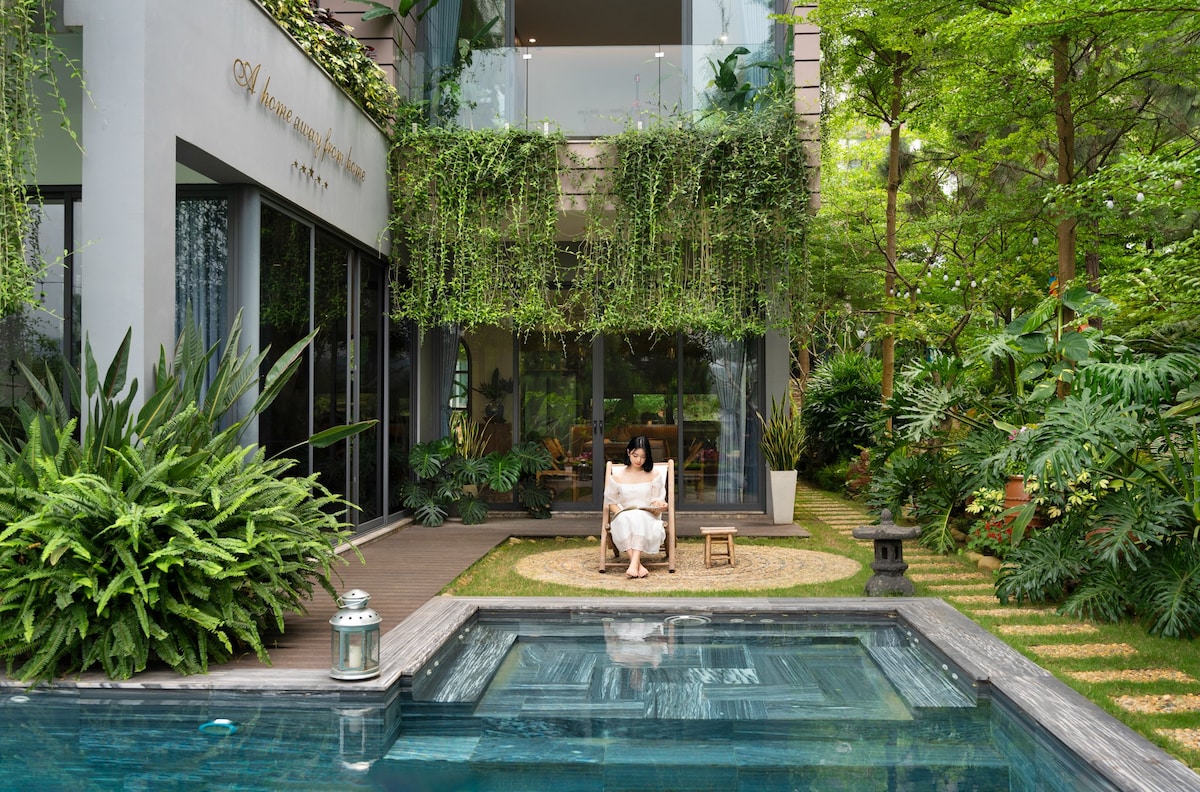 Lagom-Hilltop Evinə xoş gəlmişsiniz. Bu, Hanoydan cəmi 40 dəqiqəlik məsafədə yerləşən, Skandinaviya üslublu istirahət məkanıdır. Lagom isveç həyat fəlsəfəsidir (hər şeyin həddi var). Bu fəlsəfə mənim həyatımda dönüş nöqtəsi olduqda formalaşdı. Lagom təbiətə qayıda, həyatın təlatümündən uzaqlaşa, eyni zamanda minnətdarlıq, qayğı və pozitivliklə dolu bir yerə çevrilə bilərsiniz. Ev çiçəklərlə və yamyaşıl bitkilərlə dolu, təxminən 1000 m²-lik bağla əhatə olunub. Yaxşı ☆ ☆ ☆