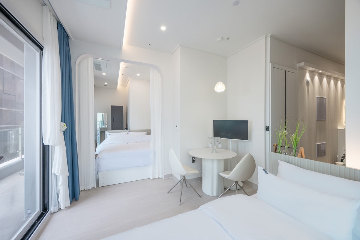 해운대 중심에 위치한 ThePlace34의 초고층 오션뷰 객실입니다. 해변 도보 5분, 지하철역 도보 3분으로 접근성이 뛰어납니다. 체크인 전·후 무료 짐보관이 가능해 이동이 한결 편리합니다. 전 객실 정수기와 Netflix·YouTube 시청이 가능합니다. 합법 숙소로 안심하고 편안하게 머무실 수 있습니다. ✅️체크인 / 체크아웃 : (4:00 PM / 12:00PM)