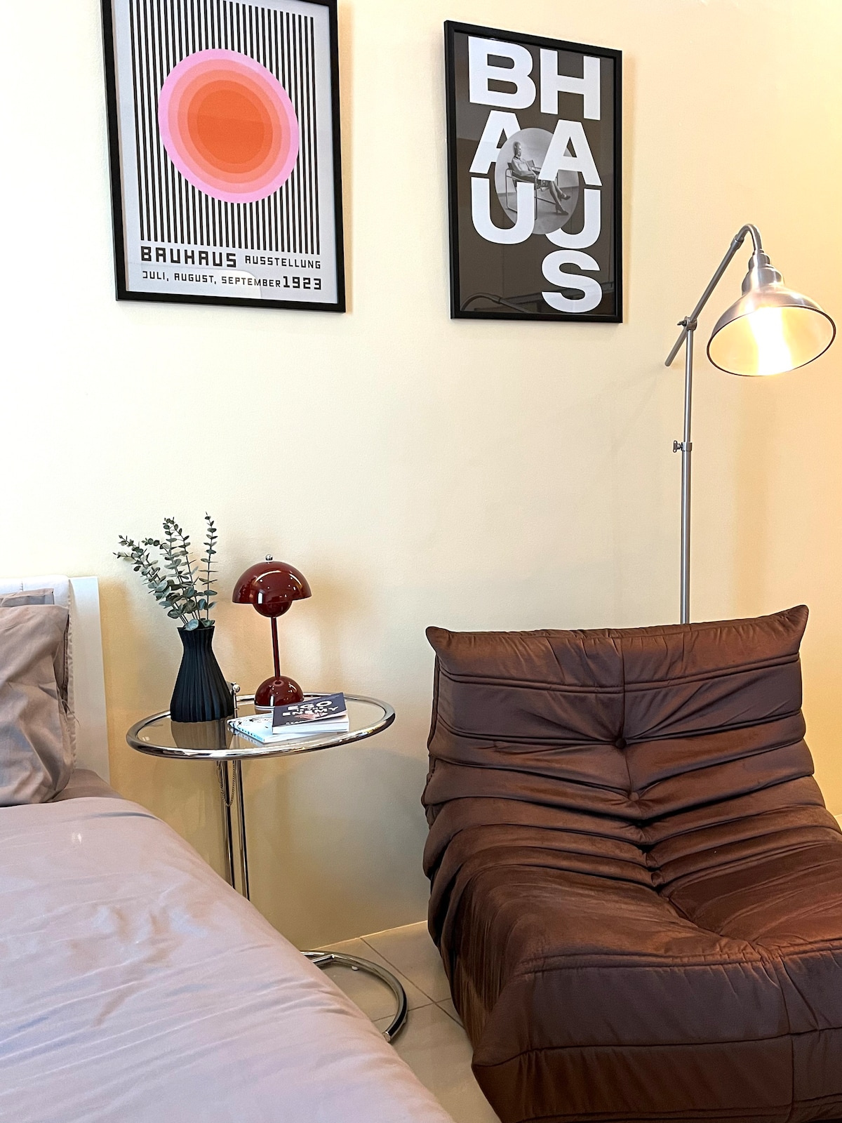 Pulsuz şərabı açın və retro Marshall dinamikləri vasitəsilə musiqiyə qulaq asın. Burada xüsusi ağac mebellər teksturalı beton divarlar, təmtəraqlı fars xalçaları, klassik üzüm parçaları və 60-cı illərin pop incəsənət aksentlərinə cavab verir. Sənaye və retro xüsusiyyətlərinin zərif sintezi nəticədə bu loftun unikal, xüsusi xarakterini əks etdirir. Fotogenik butik incəsənət və otel ab-havası üçün mükəmməldir. Manilanın ən premium yerlərindən birində qonaqlamaq istəyən işgüzar səyahət və zövqlü cütlüklər üçün fantastik seçim.