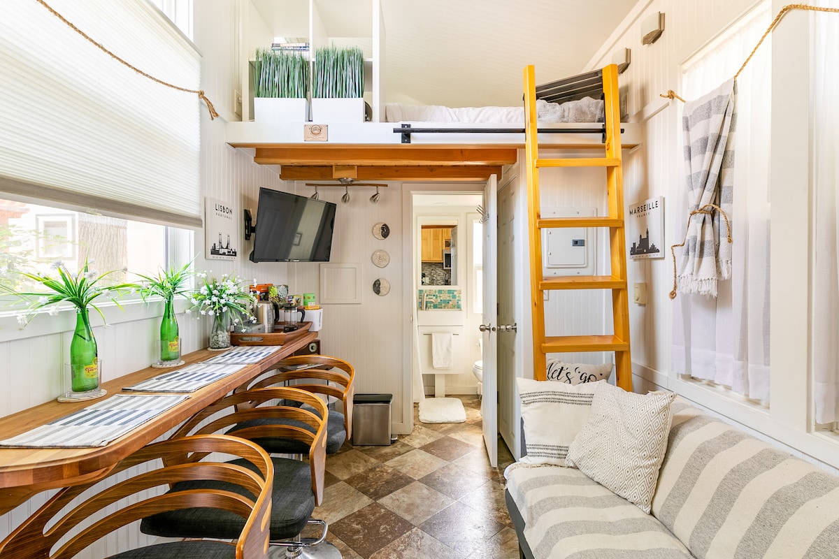 Gicəlləndirici, yüksək səviyyəli, Avropa üslubu, 1200 sf loft. Tam Mebelli/Açıq döşəmə planı/taxta döşəmələr/sakit yaşayış məhəlləsi. Kinq ölçülü çarpayı (istəyə uyğun olaraq dəbdəbəli, rahat kraliça hava döşəyi). 4 nəfərlik yemək, 50" TV, Roku, İnternet/WiFi, ofis sahəsi olan oturma sahəsi. Mebelli qurman mətbəxi: qranit zirvələr/paslanmayan avadanlıqlar. Dəsmal və yataq dəstləri. Ayrıca sürücü/giriş. Camaşırxana: 2-ci vahid ilə paylaşılan paltaryuyan/quruducu/ütü/ütü masası/1/2 hamam. U/V sisteminiz "Evdən Uzaqda".
