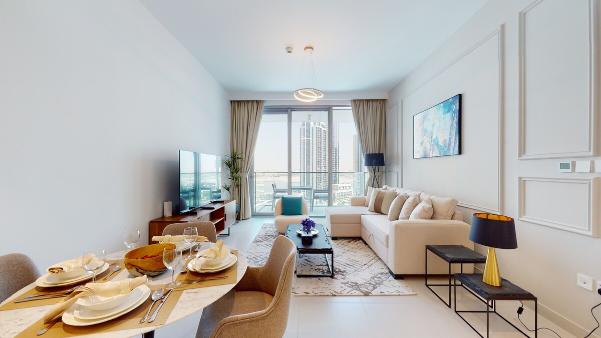 Bu müasir eklektik 2 otaqlı mənzil Dubayın ən çox axtarılan məhəllələrindən biri olan canlı və dinamik Dubay Krik Limanında möhtəşəm şəkildə yerləşir. Rahatlığını və heyrətamiz vistalarını nəzərə alsaq, Dubay Krik Limanı da rahat gəzintiyə çıxmaq istəyənlər üçün mükəmməldir. Xoş bir təcrübə üçün sahilboyu gəzin və ya velosipedinizə ümid edin və yaddaqalan dövrə gəzintisinə çıxın.