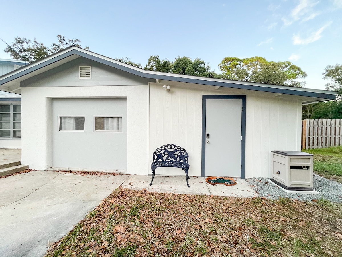 Relax with the whole family at this peaceful place to stay. Fun animal themed, totally remodeled upstairs apartment with one bedroom and kitchen. Private entrance and on driveway parking. Private screened lanai upstairs with outdoor dining and room for family games or entertaining. Access to the pool and lanai (newly renovated), fire pit, treehouse, swing and your own gas grill for guest use. Spacious back yard on a cul-de-sac. Close to shopping, dining, beaches, the airport and the interstate.
