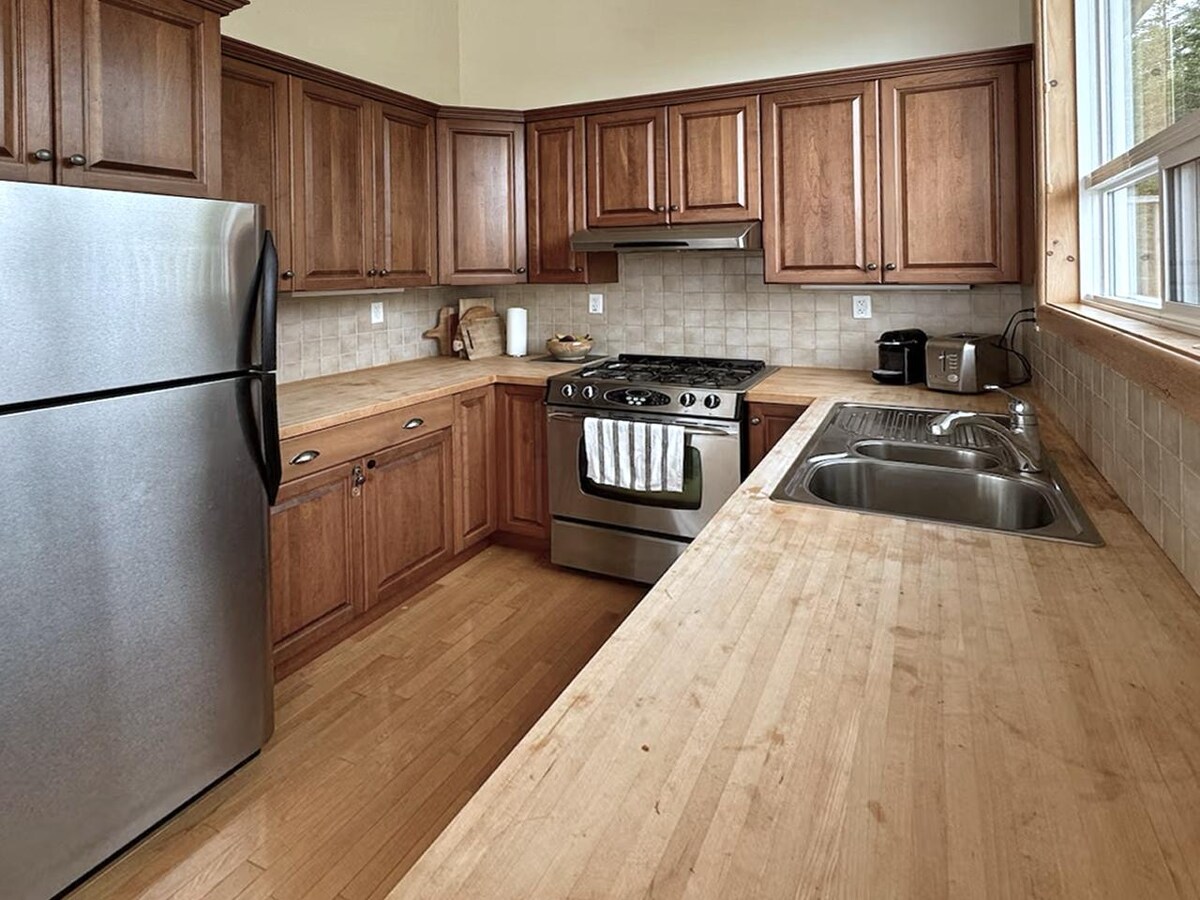The GROUND FLOOR - Sea View! Relax and enjoy this modern space with spectacular ocean views in your home away from home. The whole ground floor apartment is a private, separate space with a full kitchen, bathroom, master bedroom and kids bunk room and a deck with a sea view! Take an evening stroll along the boardwalk, explore town, or relax in and cozy up to Crave TV by the fireplace. Super-fast wifi and basic amenities like tea, coffee, sugar and some essentials provided.