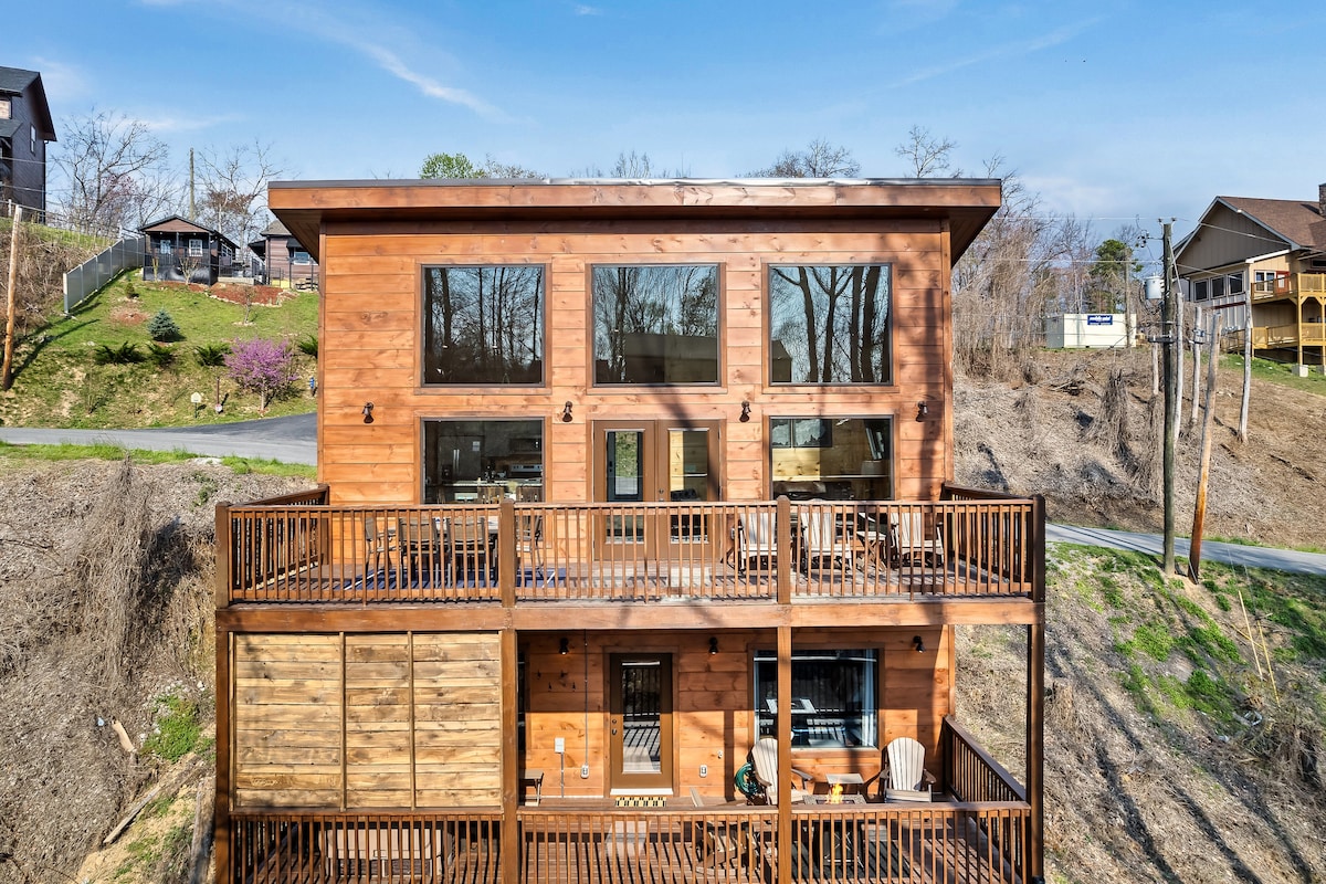 Lüks Xüsusi Dağ Evi! 2mi to dtwn/king bed/hottub