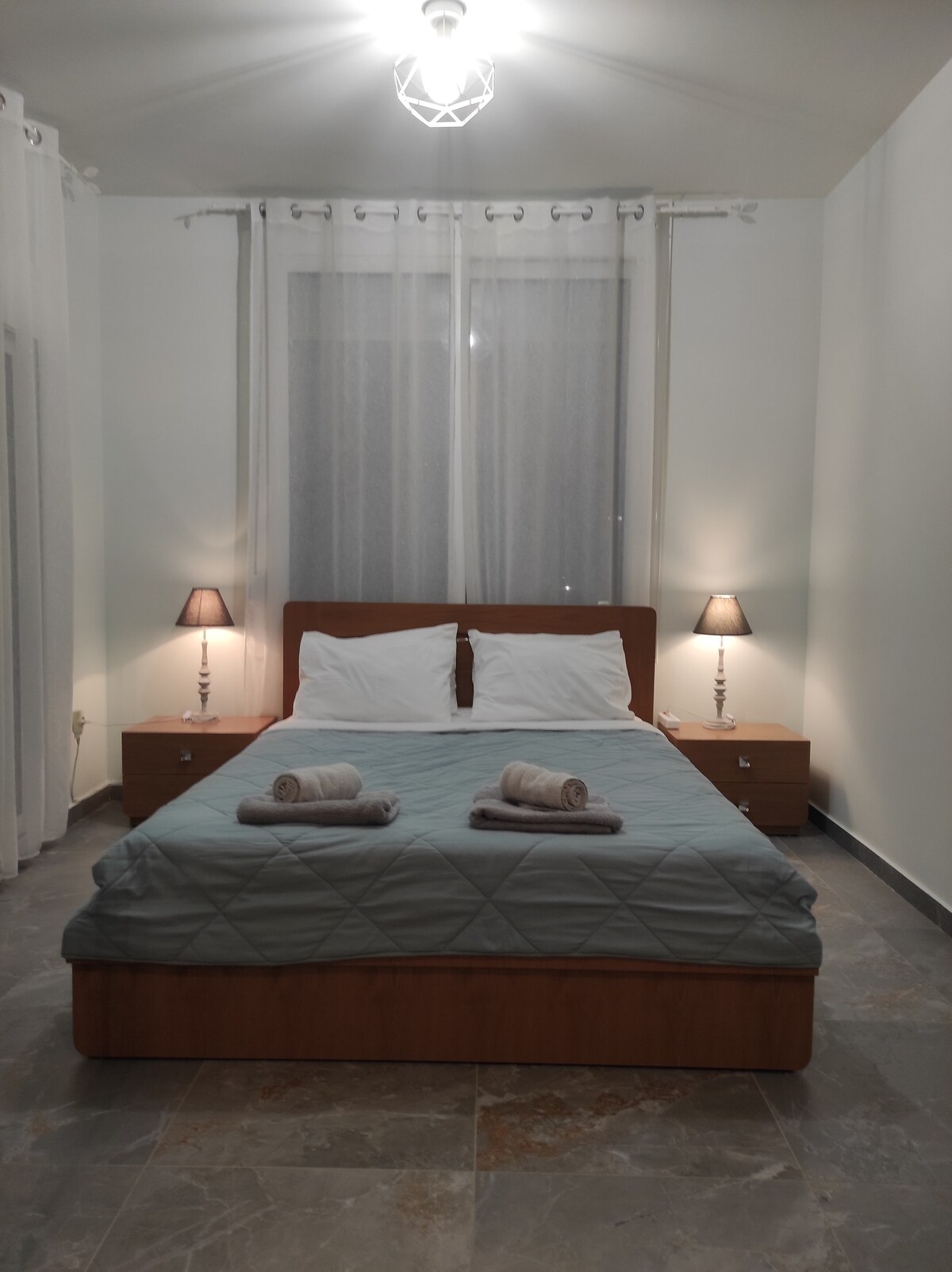 Ste's appartment in Thermi is only 2.7 km from Makedonia Airport (SKG). Two bedrooms, comfortable living room with fireplace, fully equipped kitchen, renovated bathroom and balcony with an amazing view. Close to Mediterranean Cosmos(the biggest shopping mall in the Balkans)Regency Casino, International Hellenic University and the European Interbalkan Medical Center. Close to the beach of Perea and Epanomi. Suitable for one night or long term stays!