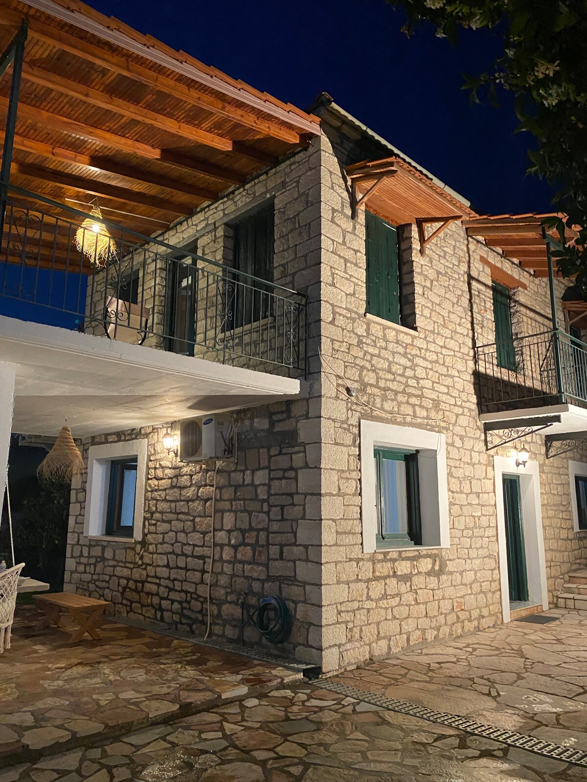 The stone house is at the edge of a deserted village of the 18th century, Paleohori (Old Village), built at 1930 and restored at 2005, in a land of 3.000 square meters. Located on a hill of mount Arakinthos in Aetolia, at a height of 250m., with a unique magic view to the biggest natural lake of Greece, Trihonida. Is suitable for people who looking for serenity, privacy, chill out and take pleasure from the nature. "True paradises, are the paradises that have been lost" -M. Proust-
