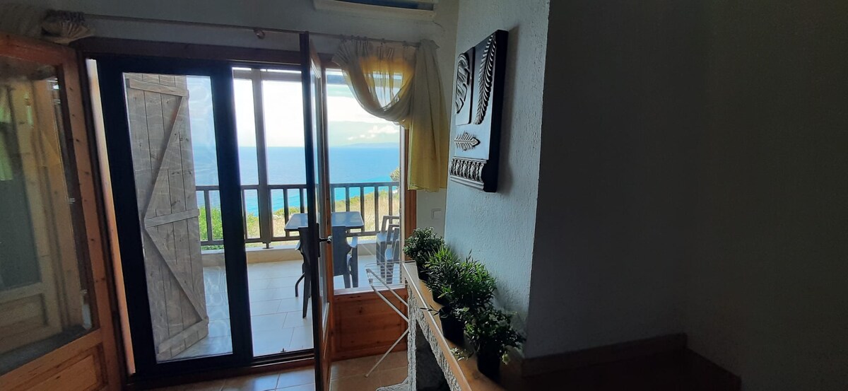 Bu dəbli və rahat qalmağa yer yay tətili üçün dənizin iki addımlığında, xarakterik ada ilə Kalamitsi Akti qumlu çimərliyinə baxır. Əmlakda müvafiq olaraq ikinəfərlik və ikinəfərlik 2 yataq otağı var. Dəniz mənzərəli geniş və müasir qonaq otağı - mətbəx və balkon, eləcə də şəxsi parkinq. Sahildə gəzinti məsafəsində yemək seçimləri, supermarketlər, su idman növləri və dalğıc məktəbi var.