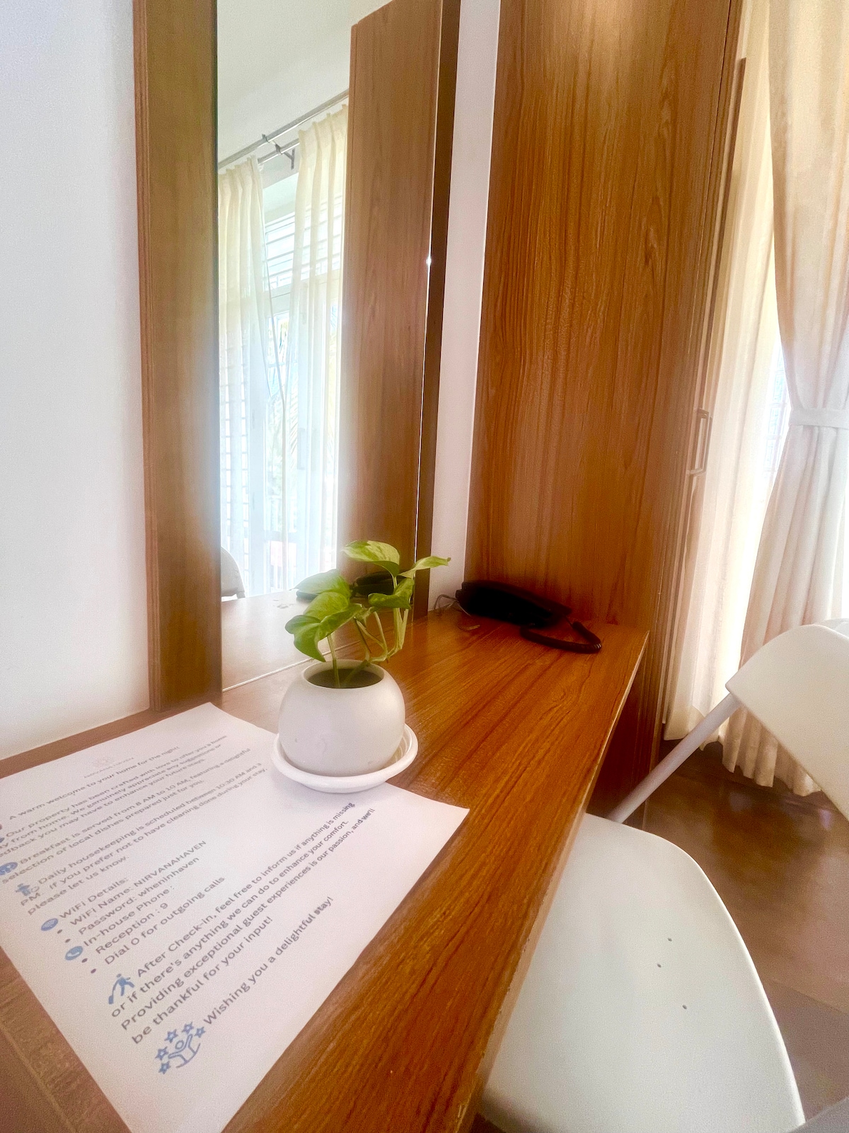 Ev kokos ağacları və çiçək açan orkide arasında tamamilə yaşıl kəmərdə yerləşir. Mövqe Keralanın bir çox ekzotik quşlarına ev sahibliyi edir. Həmçinin hava limanından 18 km, Trivandrum mərkəzi stansiyasından isə 7 km məsafədə yerləşir. Hava Bnb otaqları birinci mərtəbədə yerləşir. Mövcud ev tam təchiz olunmuş mətbəxi və anbarı olan aktiv yaşayış evidir. Lakin Mariya əvvəlcədən bildirişə əsasən yemək təşkil edə bilər. Yemək üçün ödənişlər menyuya əsasən tövsiyə ediləcək.