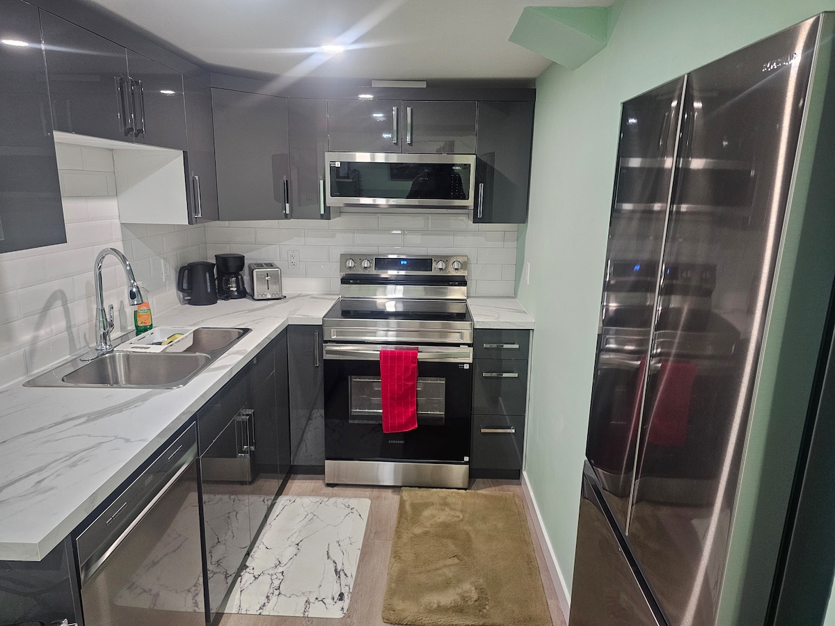 Səyahətçilər, cütlüklər və ya peşəkarlar üçün mükəmməl füsunkar zirzəmi süitamıza xoş gəlmisiniz. Rahatlığınız üçün xüsusi girişdən, rahat yataq otağından, hamam-tualetdən, mebelli qonaq otağından və tam təchiz olunmuş mətbəxdən zövq alın. Paltaryuyan və quruducusu olan ərazidə camaşırxana əlavə rahatlıq yaradır. Şəhər hava limanından cəmi 5 dəqiqəlik məsafədə yerləşən bu məkan rahatlıq, məxfilik və yerli turistik yerlərə asan giriş imkanı təklif edir. Dinc və rahat istirahət üçün bu gün qonaqlamanızı bron edin - sizə ev sahibliyi etməyi səbirsizliklə gözləyirik!