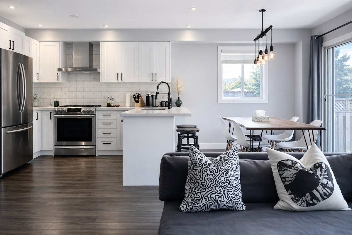 Həm istirahət, həm də işgüzar səyahətçilər üçün mükəmməl bir yataq otaqlı daha aşağı səviyyəli mənzildə yerləşən bu mərkəzdə dəbli və rahat qonaqlamadan zövq alın. Xüsusi girişiniz, parkinqiniz və bütün vaciblərinizlə evdən uzaqdakı ideal evinizdir. Xüsusiyyətlərə tam mətbəx, hamam otağı, internet, ağıllı televizor, bir Kraliça və bir divan çarpayı və funksional iş sahəsi daxildir. FreshCo, Walmart, restoranlar və xidmətlərdən addımlar. Von Mills, Kanadanın Ecazkarlığı, Kortelluççi Xəstəxanası və tranzitə dəqiqələr qalır.